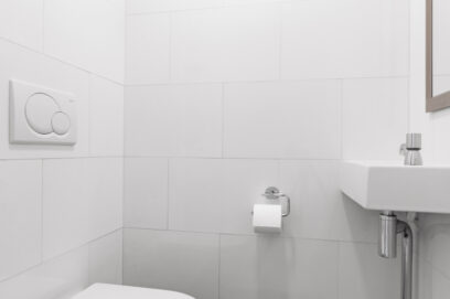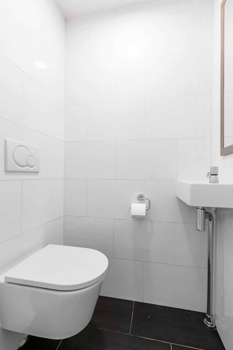 The home features four well-sized bedrooms, suitable for families or working from home. There are two modern bathrooms: the main bathroom includes a bathtub, separate shower, toilet, and washbasin. The second bathroom offers a shower, washbasin, and a second toilet.