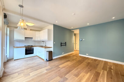 Central entrance with entrance of the apartment on the 1st floor. Bright living room with original stained glass details and open kitchen with various built-in appliances, including a fridge / freezer, oven, dishwasher, gas hob with extractor. Three sets of double doors to the balconies at the front. The 2 bedrooms are located at the rear and both offer access to a wonderful balcony on the sunny west. The modern bathroom has a bathtub, a separate walk-in shower and a sink. The washing machine and dryer are also set up in the bathroom. Separate toilet with hand basin. The entire apartment has a beautiful wooden floors.