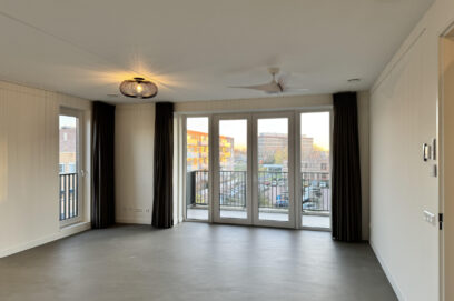 The corner apartment is accessible via the gallery. The front door leads to the hallway, which provides access to all rooms in the property. There is a meter cupboard, a storage room with washing machine and dryer connections, a bedroom, a toilet, a second (bed)room, the bathroom, and the living room. The spacious and bright living room offers beautiful views through the windows at both the side and front of the apartment. The south-facing balcony is accessible from the living room. The modern kitchen is located at the rear. This open-plan kitchen is fully equipped, including a refrigerator, a freezer, a combination microwave oven, a dishwasher, an induction hob, and an extractor fan. The bathroom has a shower, a double sink with vanity, and a designer radiator.