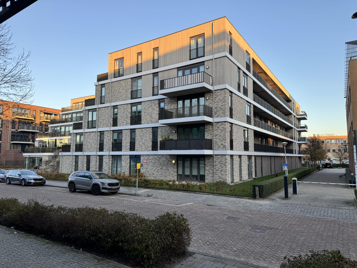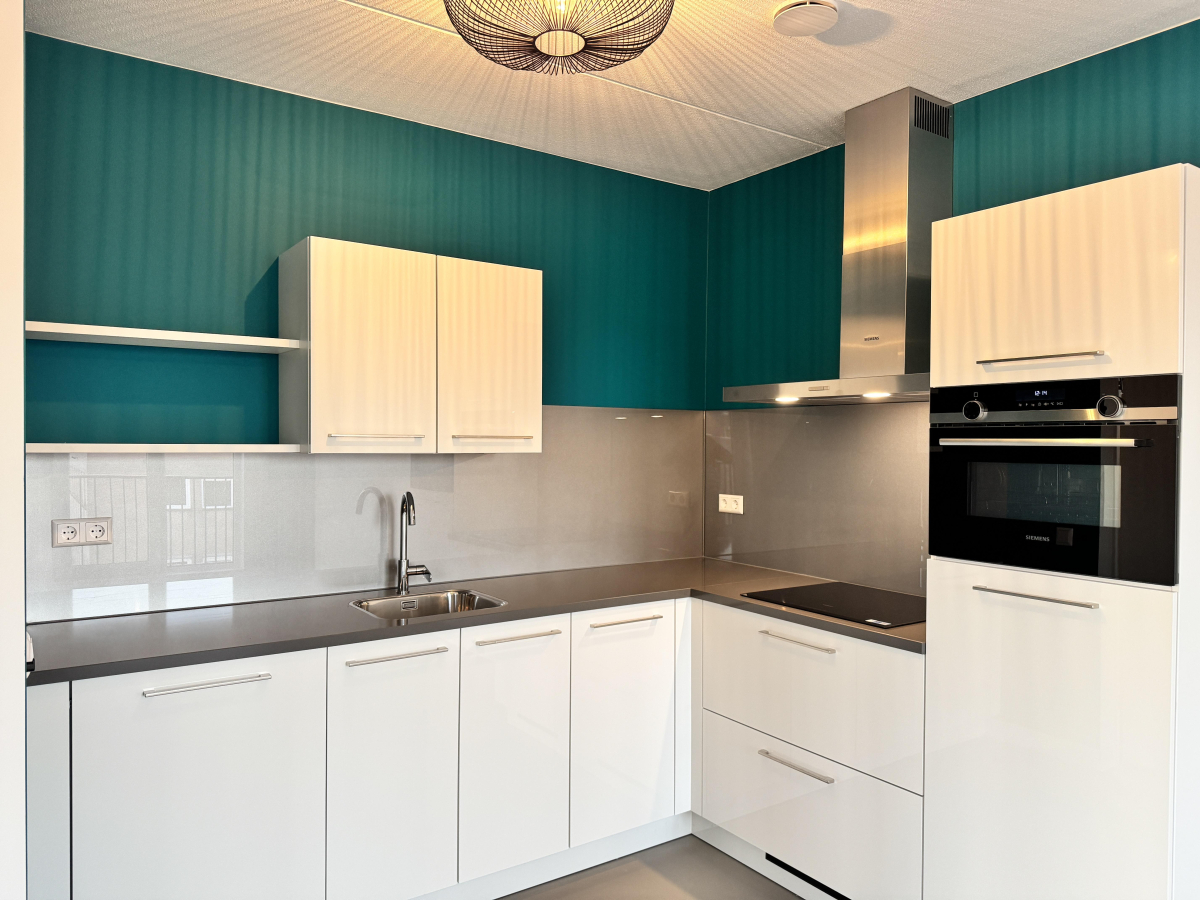 The corner apartment is accessible via the gallery. The front door leads to the hallway, which provides access to all rooms in the property. There is a meter cupboard, a storage room with washing machine and dryer connections, a bedroom, a toilet, a second (bed)room, the bathroom, and the living room. The spacious and bright living room offers beautiful views through the windows at both the side and front of the apartment. The south-facing balcony is accessible from the living room. The modern kitchen is located at the rear. This open-plan kitchen is fully equipped, including a refrigerator, a freezer, a combination microwave oven, a dishwasher, an induction hob, and an extractor fan. The bathroom has a shower, a double sink with vanity, and a designer radiator.