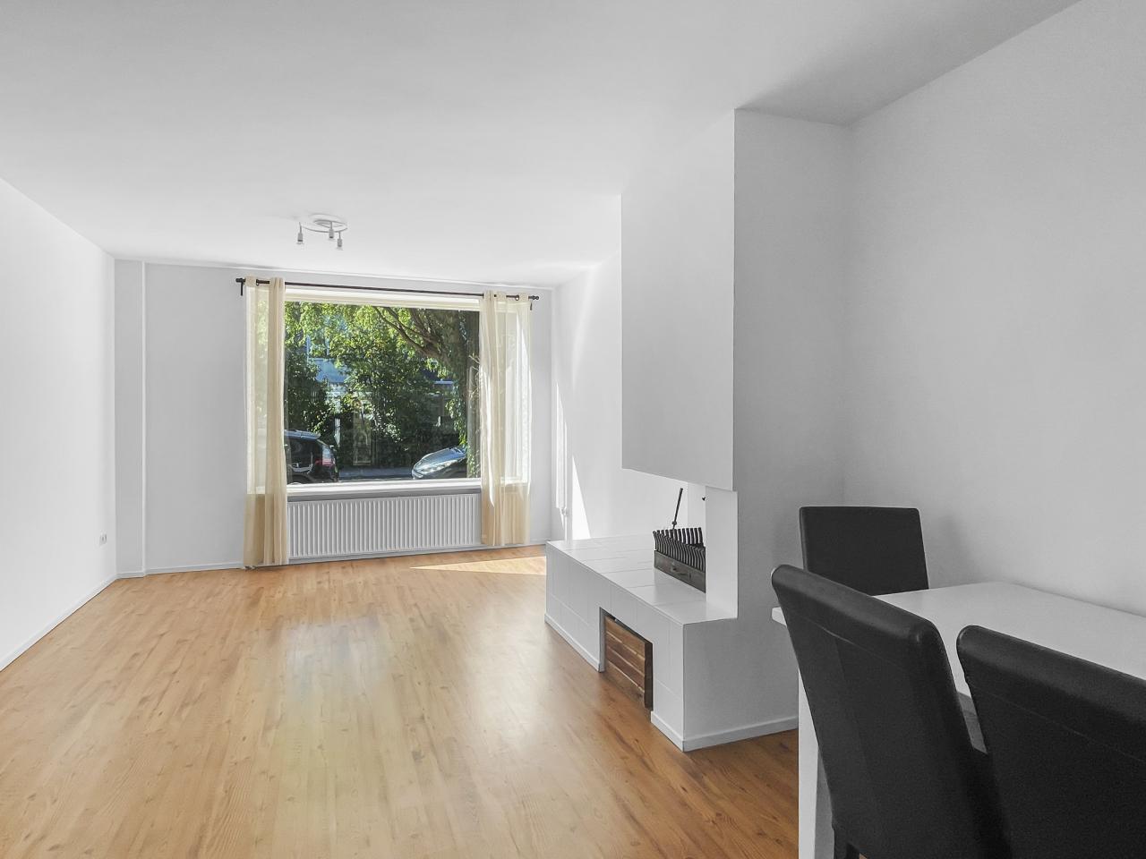 Entrance hall with staircase, toilet and access to the bright and spacious living / dining room. The living room has a nice laminate flooring, a fireplace and offers a view of the maintained front and back garden.