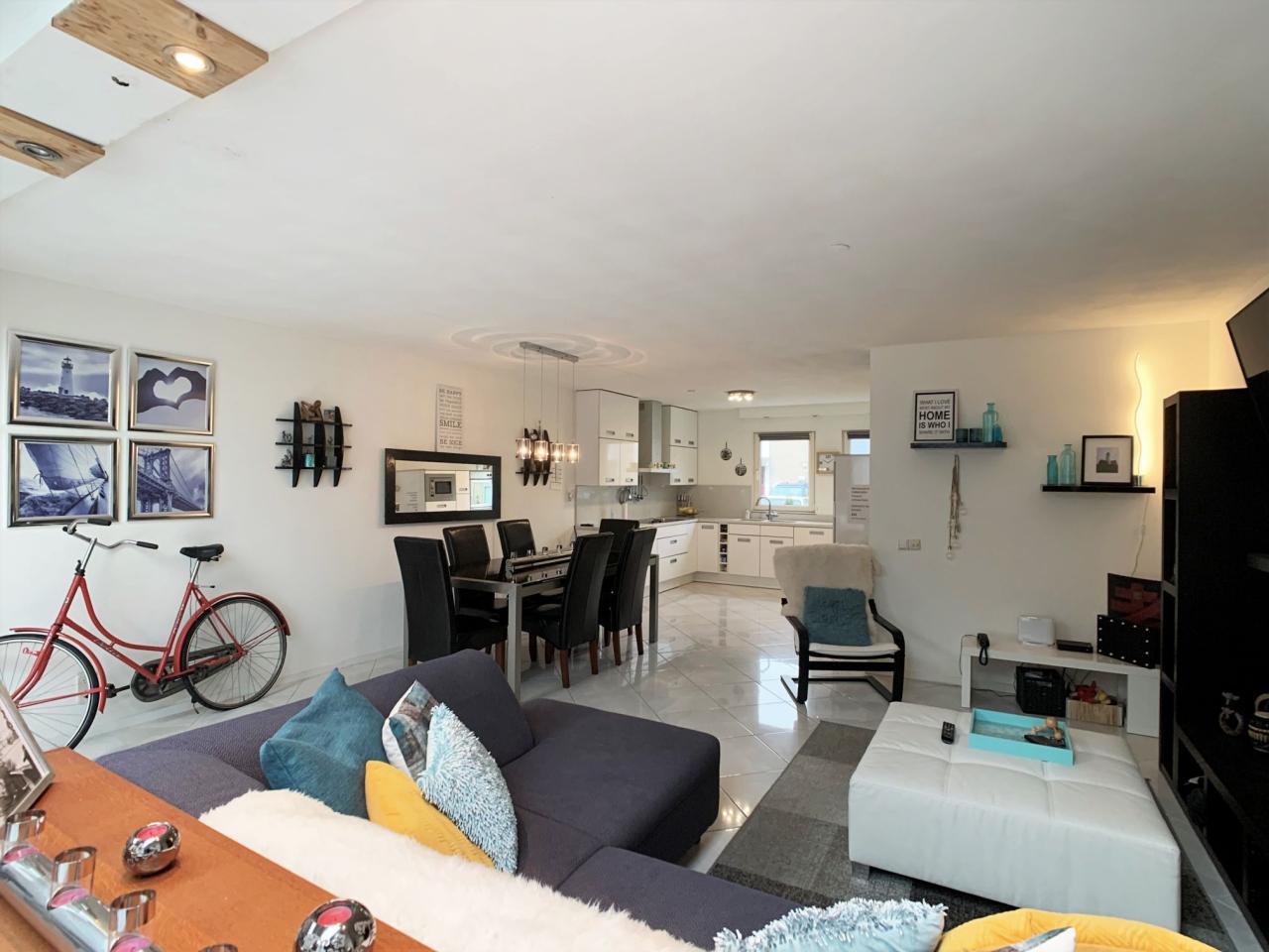 The open plan kitchen is situated at the front of the property. The modern and spacious kitchen is fully equipped, with appliances like an induction hob, fridge-freezer, microwave, oven, dishwasher, sink, spacious work surface and ample storage space.