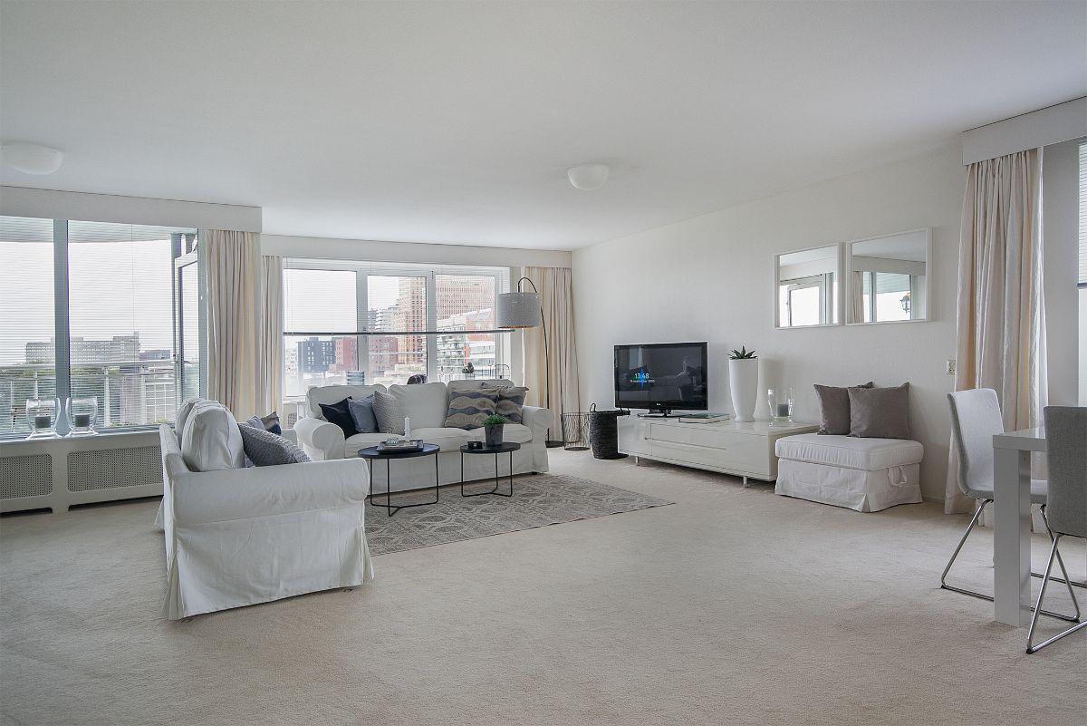 Located in a prime area near Amsterdam’s Zuid-As, WTC and the upscale shopping center Groot Gelderlandplein, this well-maintained apartment offers stylish and comfortable living. Situated on the 9th floor of a modern residential building with elevator and indoor parking, the apartment enjoys panoramic views of the business district and nearby sports facilities.