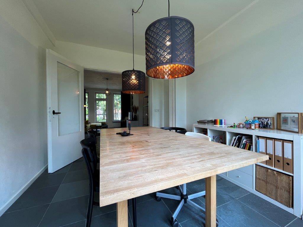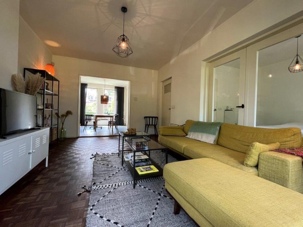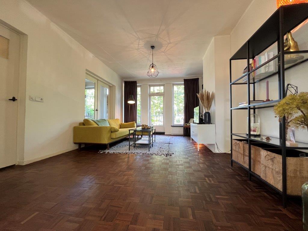 Living room with wooden floor with a beautiful view over the park. Dining room with tiled floor. Adjacent to the living room, double doors to a (bed) room with the possibility to involve in the living room. Door to the balcony.