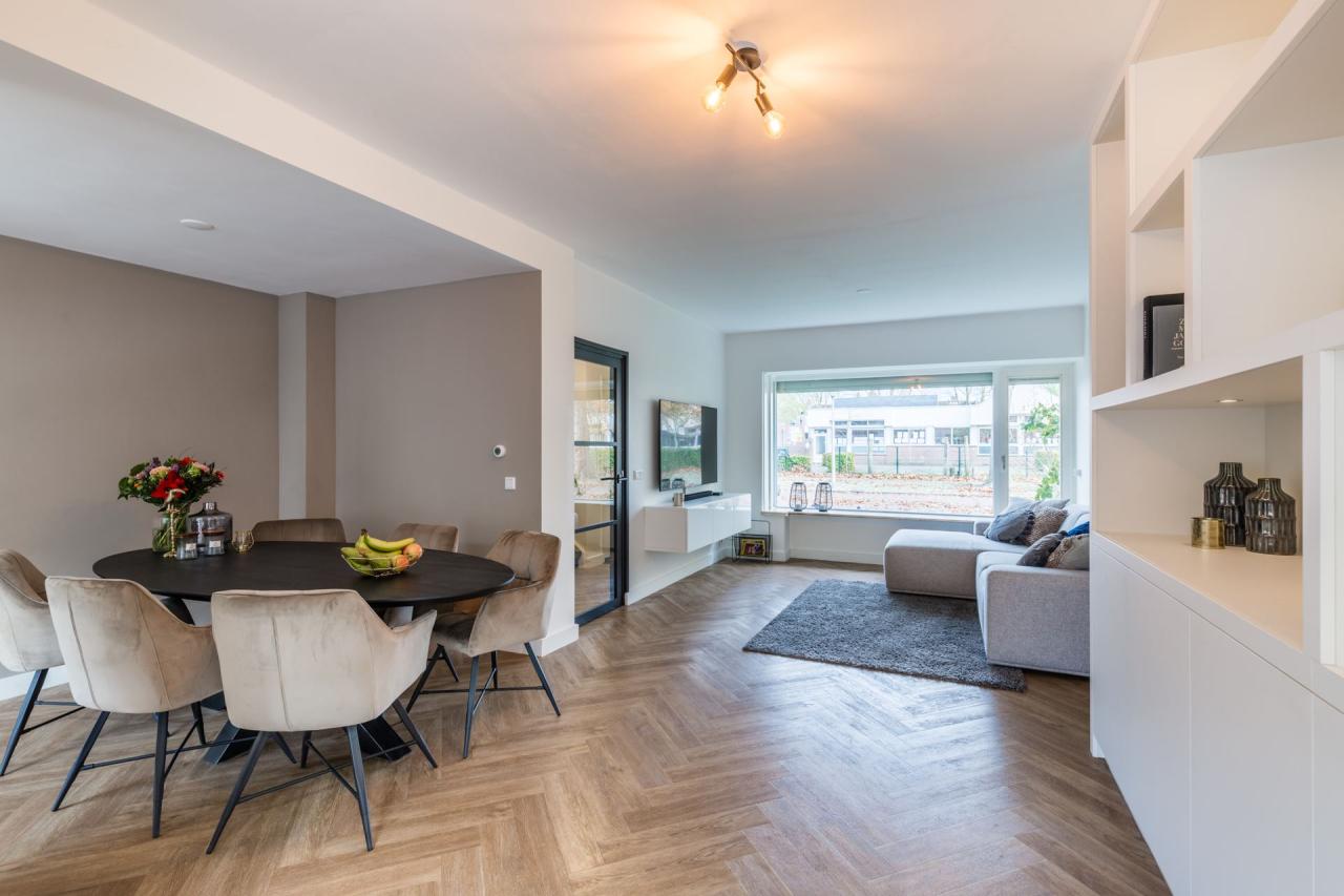 You enter a ready-to-live-in living space. The space enjoys a lot of natural light through the windows at the front of the house. The living room offers enough space to place a robust corner sofa. In the middle of the living room you have plenty of space to create a cozy sitting area. You can also place a large dining table in the room, where you can dine with your guests. The front of the house has shutters and the living room has a beautiful PVC floor which is fully equipped with underfloor heating. An eye-catcher in the living room is the modern built-in wardrobe.