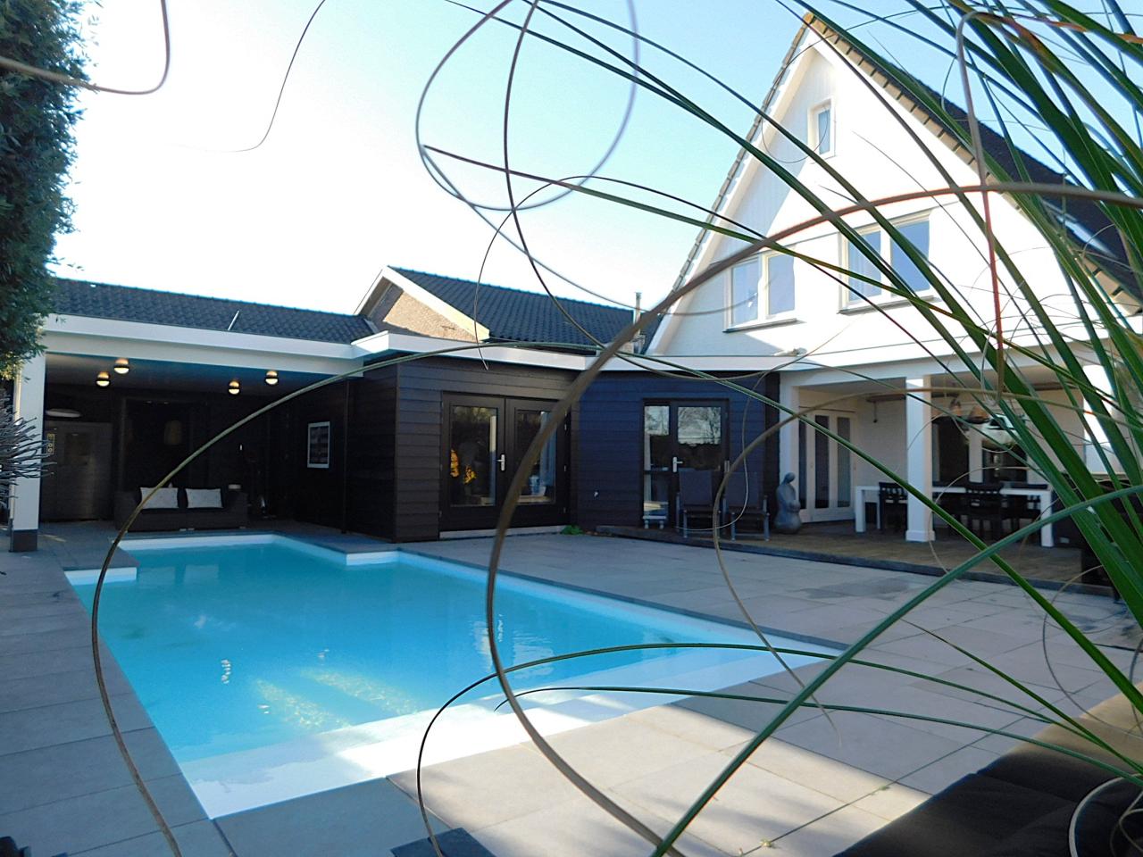 The backgarden is focused on outdoor-living, with a heated pool, several seating areas, a trampoline, a playhouse and porch. Want to freshen up after a swim? An adjoining bathroom with shower and toilet makes it possible.