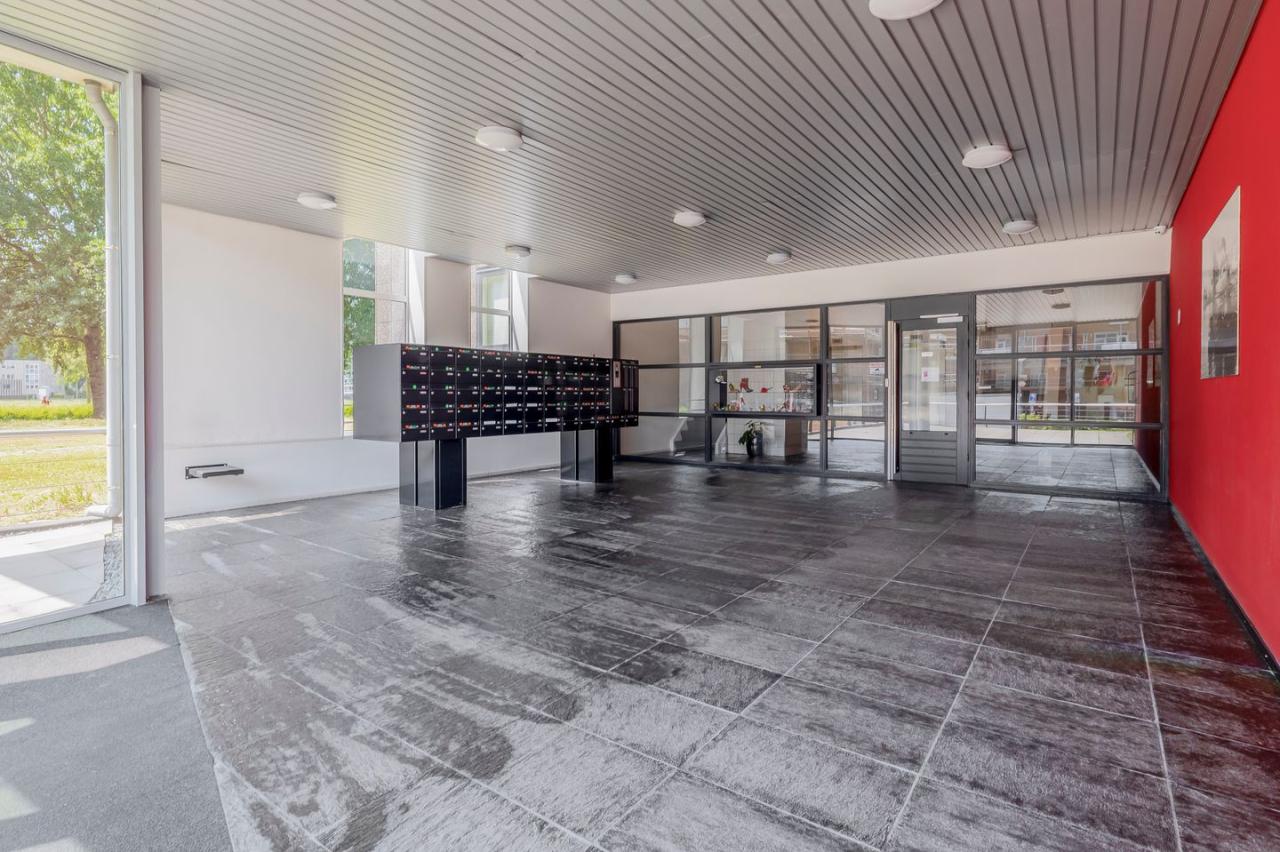Central entrance with doorbells and mailboxes. From here, you can reach the apartments via stairs or elevators.