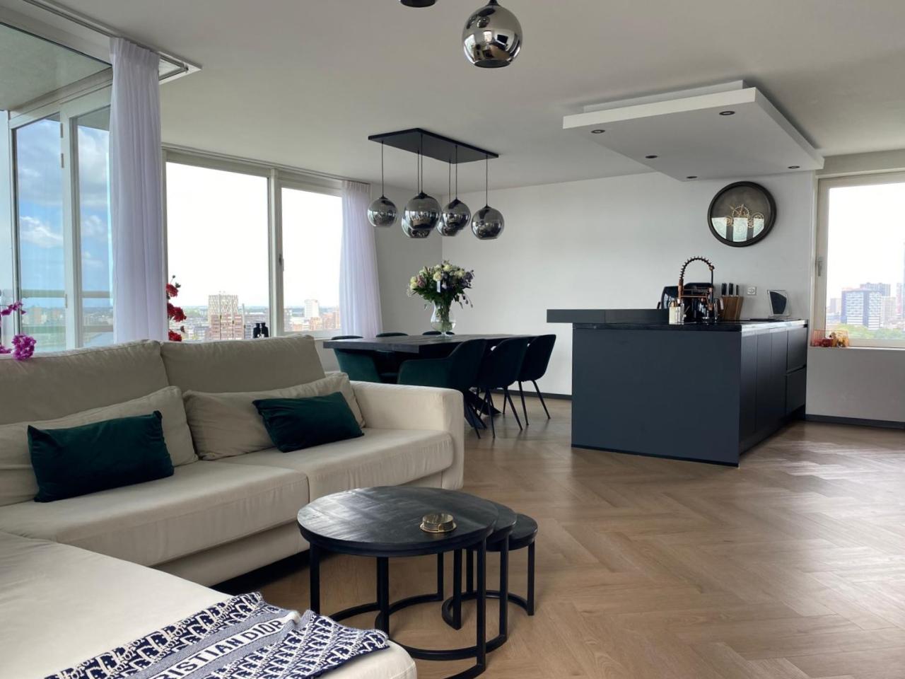Almost available: a fully furnished, stylish, and luxurious 3-room apartment on the 18th floor with a balcony and breathtaking views of the Rotterdam skyline!