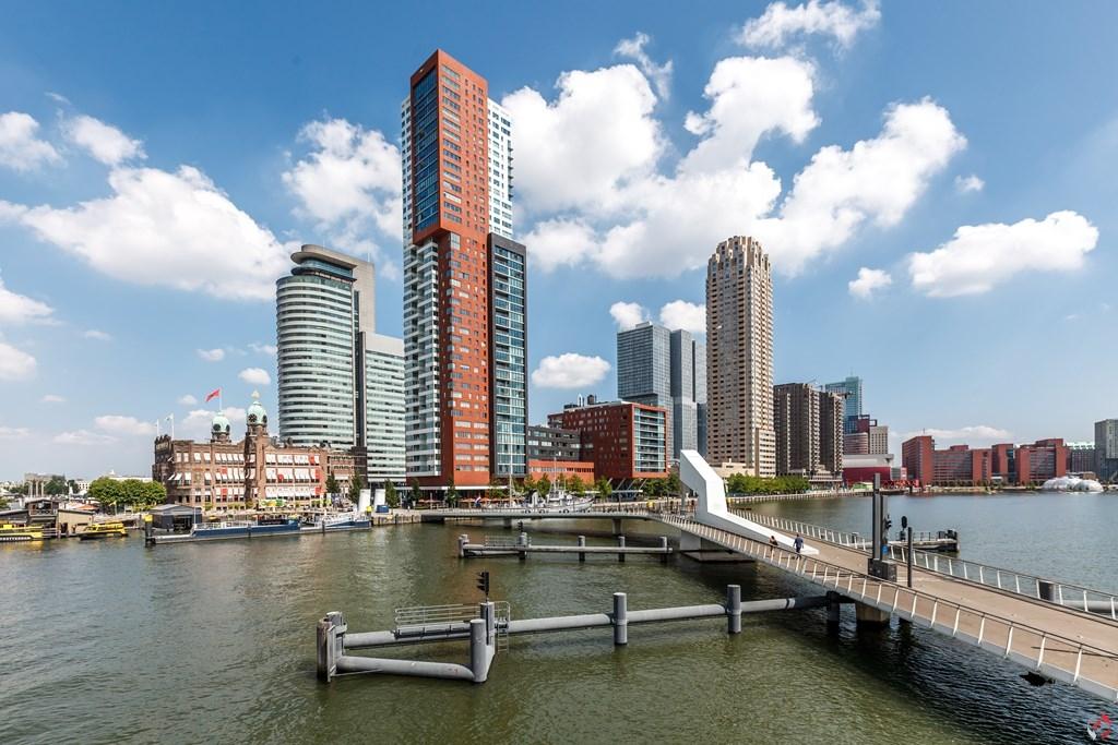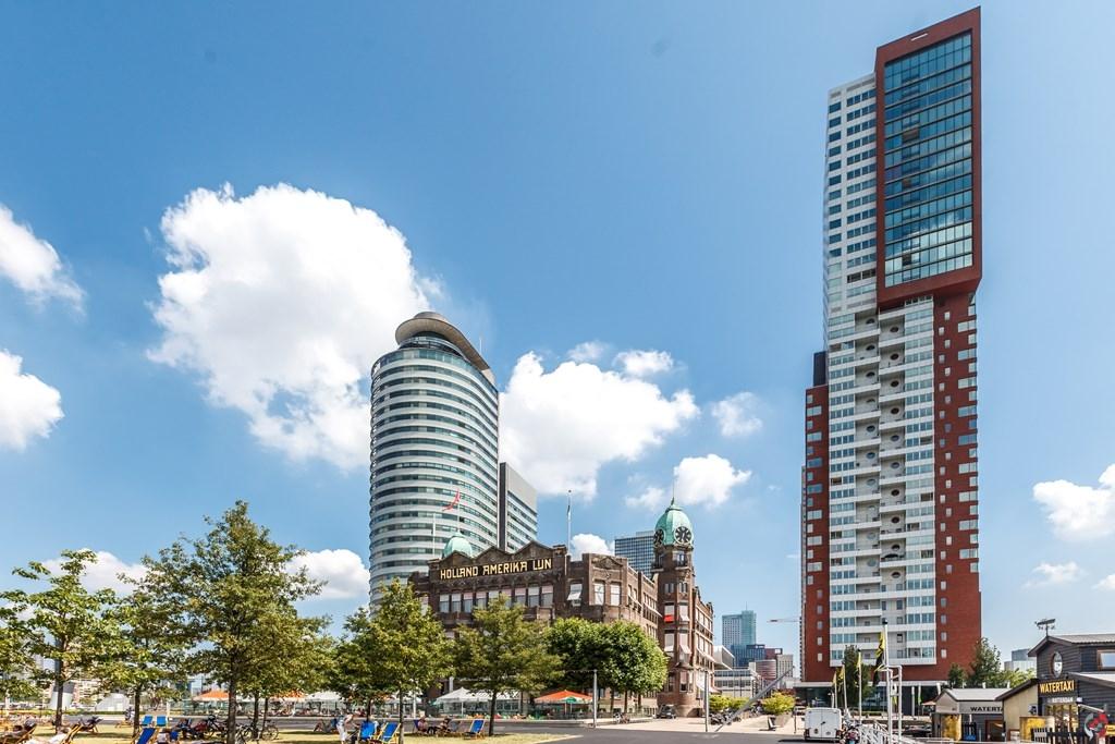 Stylishly furnished 3-room apartment on the 17th floor in the leading residential complex Montevideo which offers an amazing panoramic view over the city with, among others, the Maas, Euromast and the Erasmus Bridge. The apartment has its own parking space and private storage room. Montevideo also offers many other services for residents, such as the Excellent Health Club with swimming pool, sauna and fitness room and well-known catering establishments in the basement. The apartment is located on the Wilhelmina pier with Loetje, Aqua Asia Club, Hotel New York, the Dutch Photo Museum, De Cruise Terminal, and as an alternative to the regular taxi you can use the water taxi with a pick-up and drop-off point next to the Montevideo!