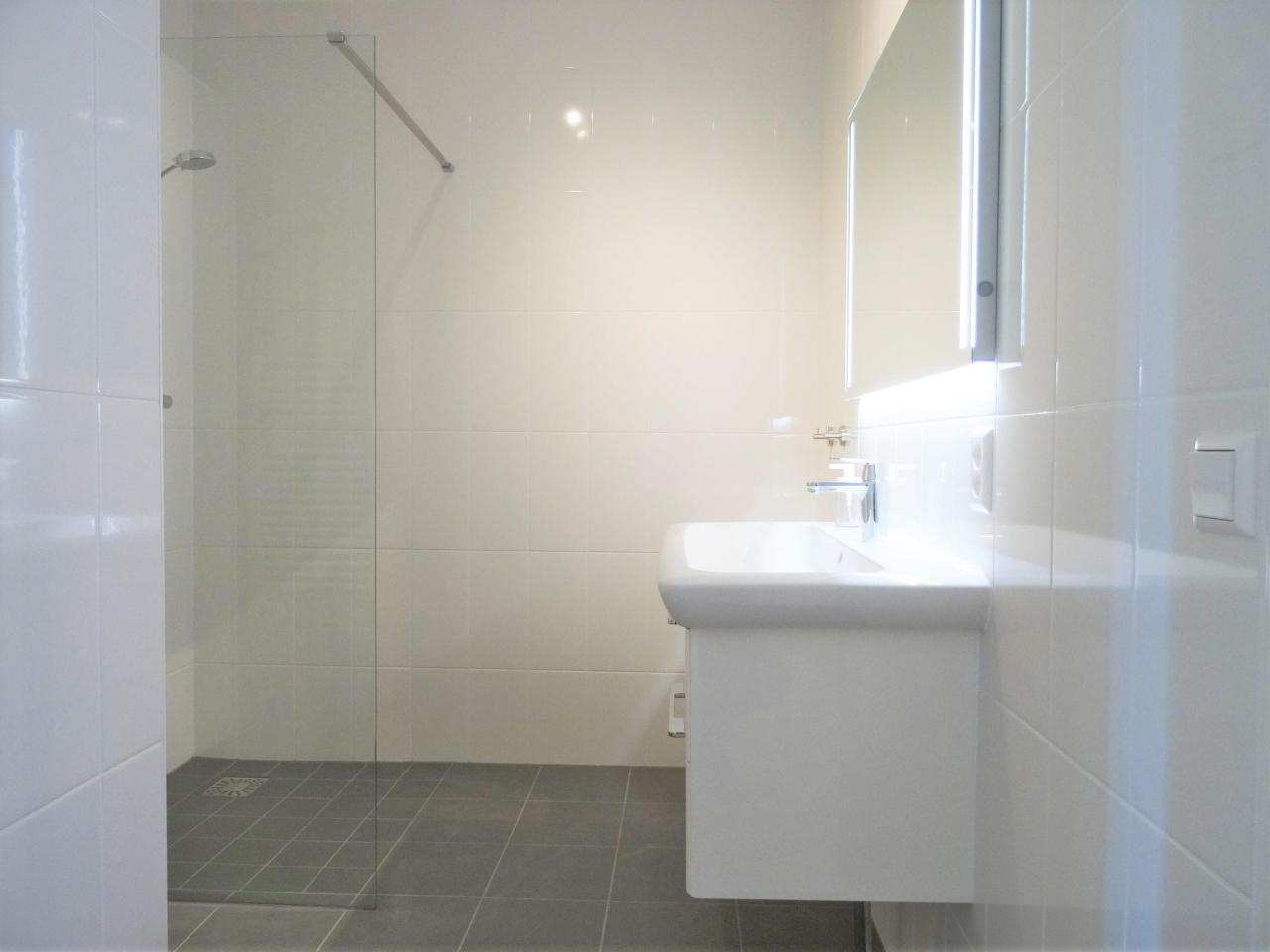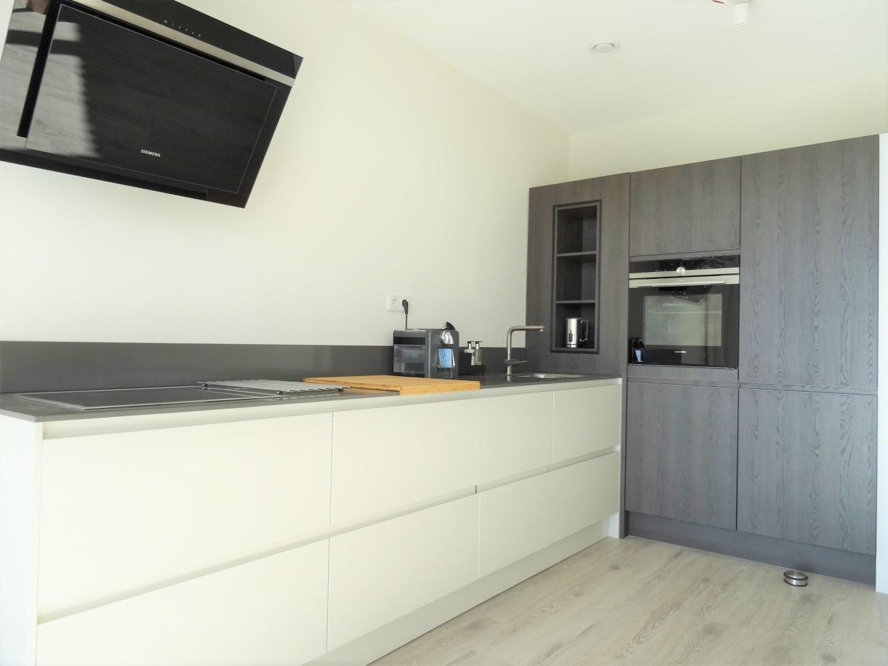 The hallway provides access to the two bedrooms on the gallery side, the toilet, bathroom, storage room and the bright living room. The living room provides access to the open kitchen and the balcony. The luxurious, modern kitchen is equipped with all conveniences such as: a fridge, a freezer, a combi microwave, a dishwasher, an electric hob and an extractor fan. The bathroom has a shower, sink with storage, a storage cupboard and a design radiator.