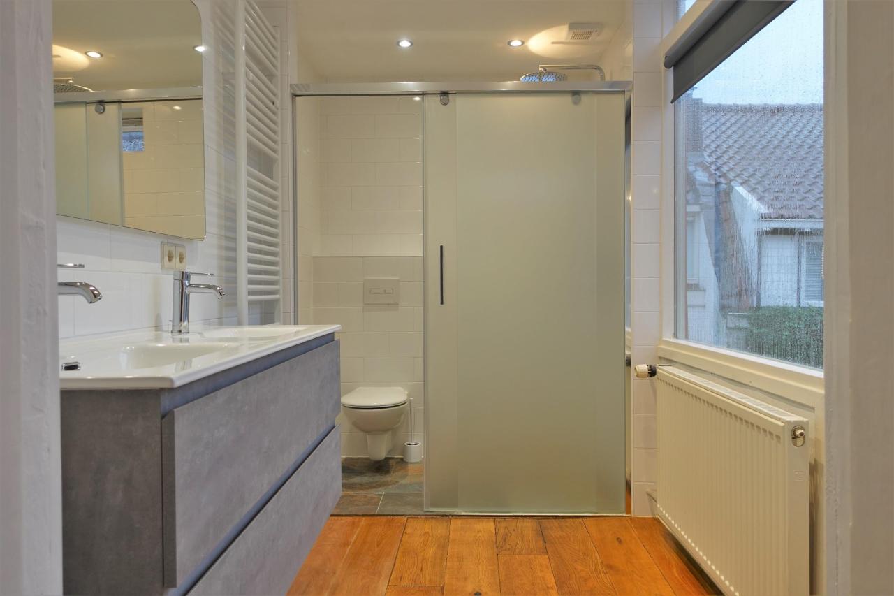 Via the staircase the landing can be reached that provides access to two bedrooms and a spacious walk-in closet. The bedroom at the rear of the property offers access to a balcony and a recently renovated en-suite bathroom. This bathroom has a shower, a toilet, a double sink and a design radiator. The bedroom at the front is equipped with a sink.