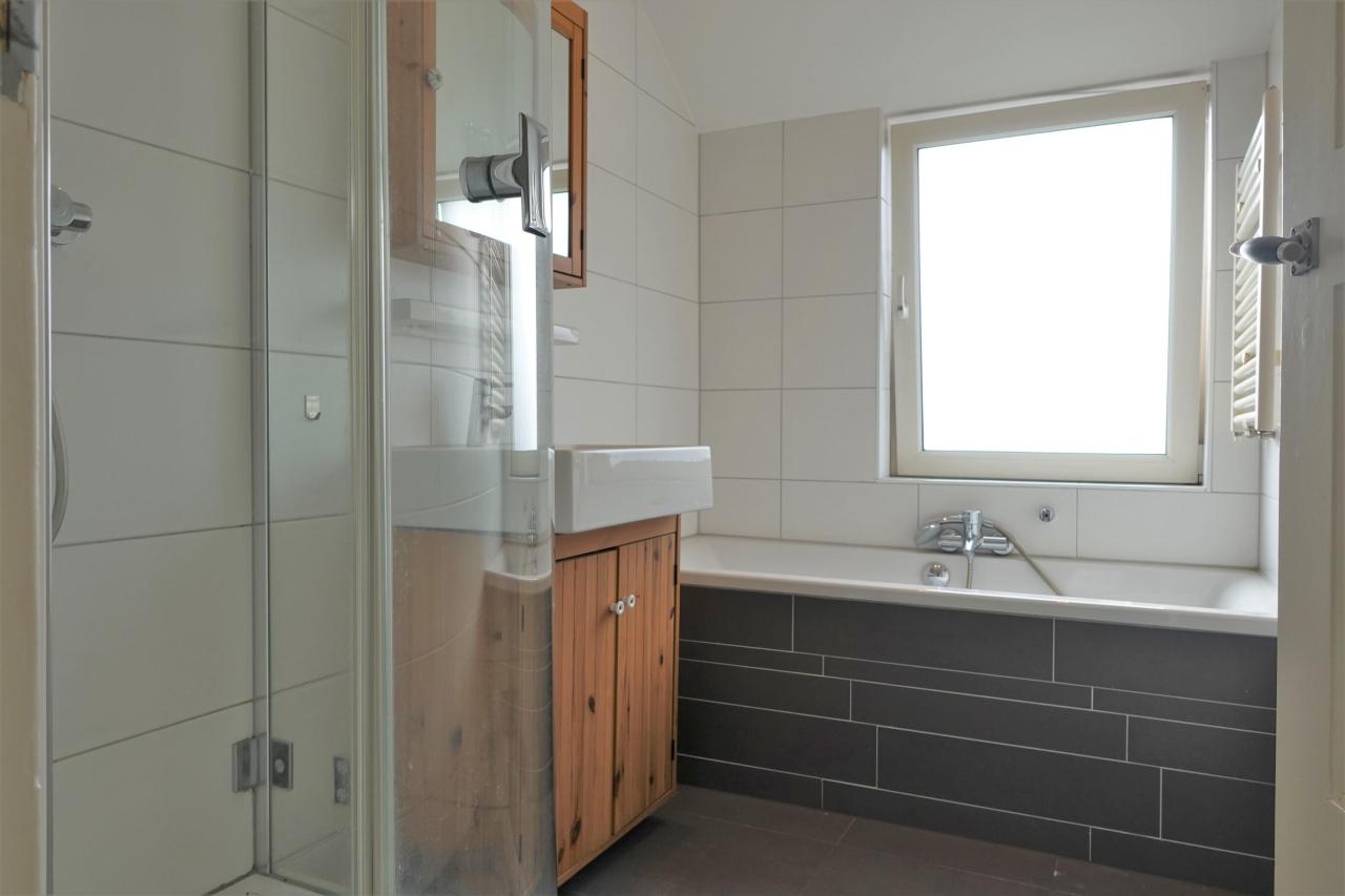The first floor can be reached via the staircase. The landing provides access to the bathroom, a spacious bedroom at the rear, a separate toilet and a bedroom at the front. The luxurious bathroom has a bath, a shower, a sink with furniture and a design radiator. A fixed staircase has been made at the front, making the attic floor easy to reach.