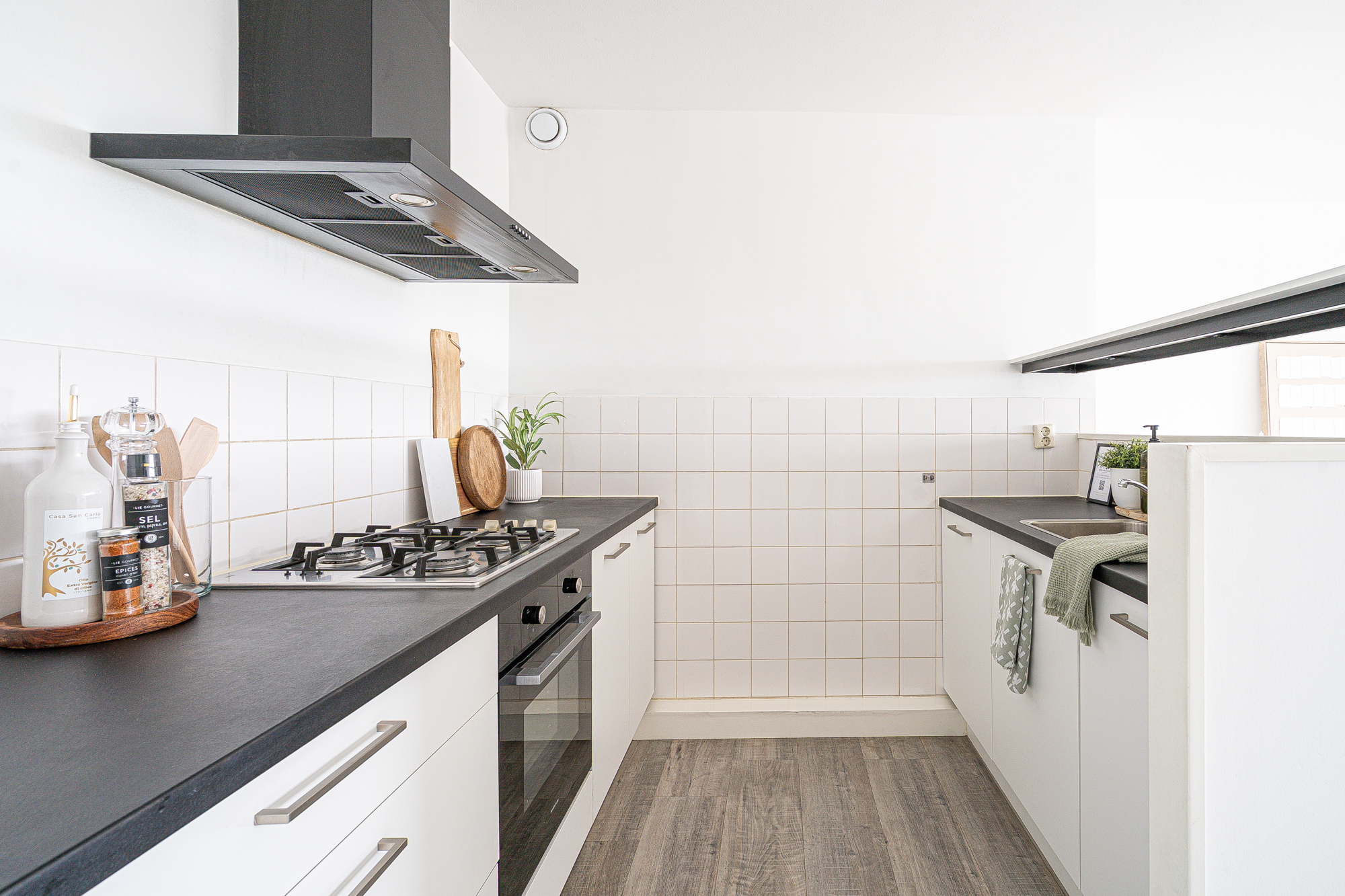 Vanuit de hal kom je in de ruime woonkamer (ca. 4,04 m breed x 8,50 m diep) met een grote raampartij aan de westzijde, wat zorgt voor een prachtige lichtinval en een spectaculair uitzicht over het mooie en authentieke Haarlem. De ruime open keuken, grenzend aan de woonkamer, is voorzien van een aanrechtblok met spoelbak, gaskookplaat, afzuigkap en diverse inbouwapparatuur.