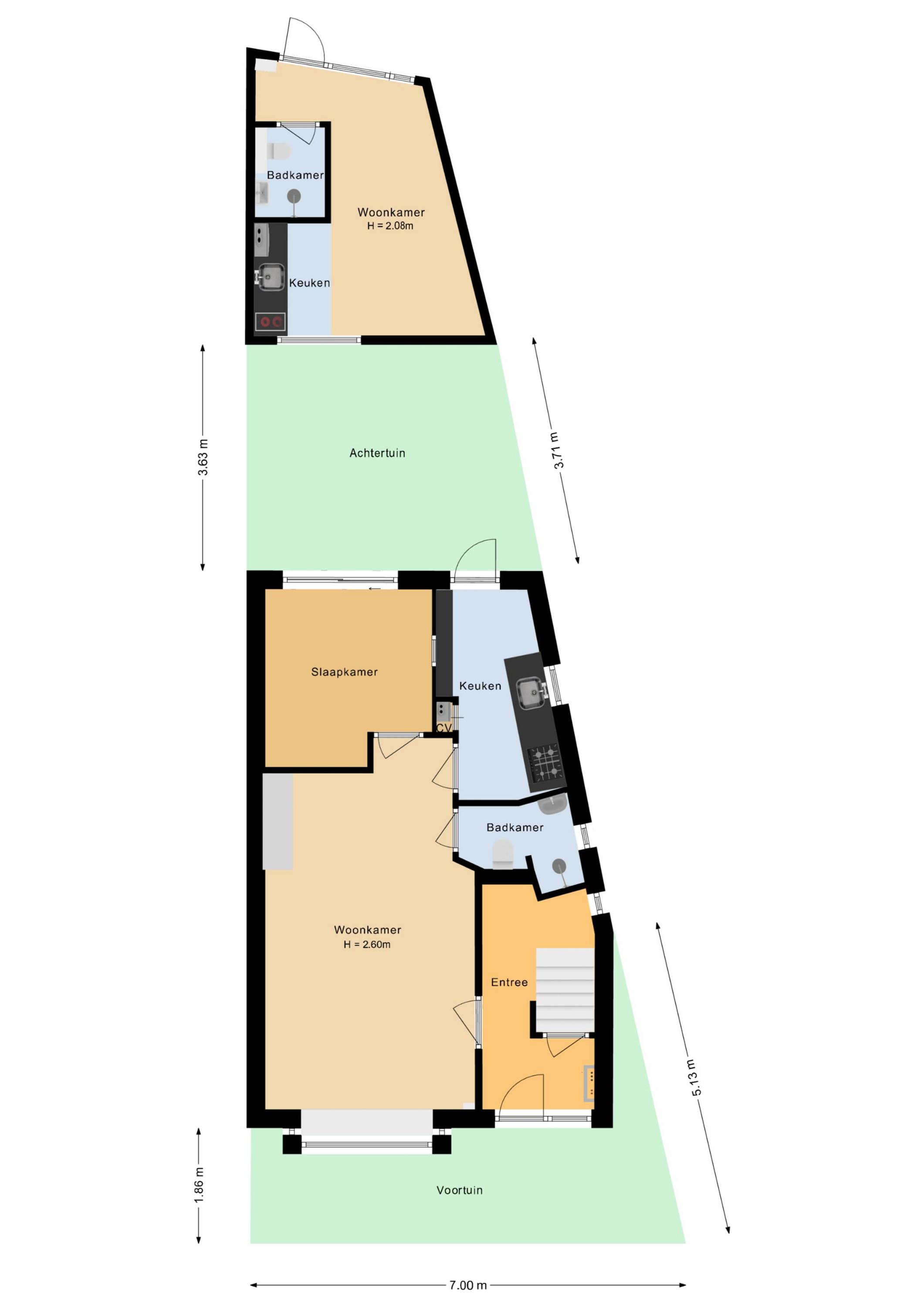 This spacious and bright home is situated in a pleasant spot in Noordwijk aan Zee, within walking distance of the beach, the shopping street, and a diverse range of restaurants and bars. Currently, the main house is divided into two separate living units: a ground-floor apartment with a garden on the ground floor and a maisonette on the first and second floors. Naturally, this arrangement can be adapted back to the standard layout of a single-family home. Furthermore, there is a fully equipped guest house in the backyard.