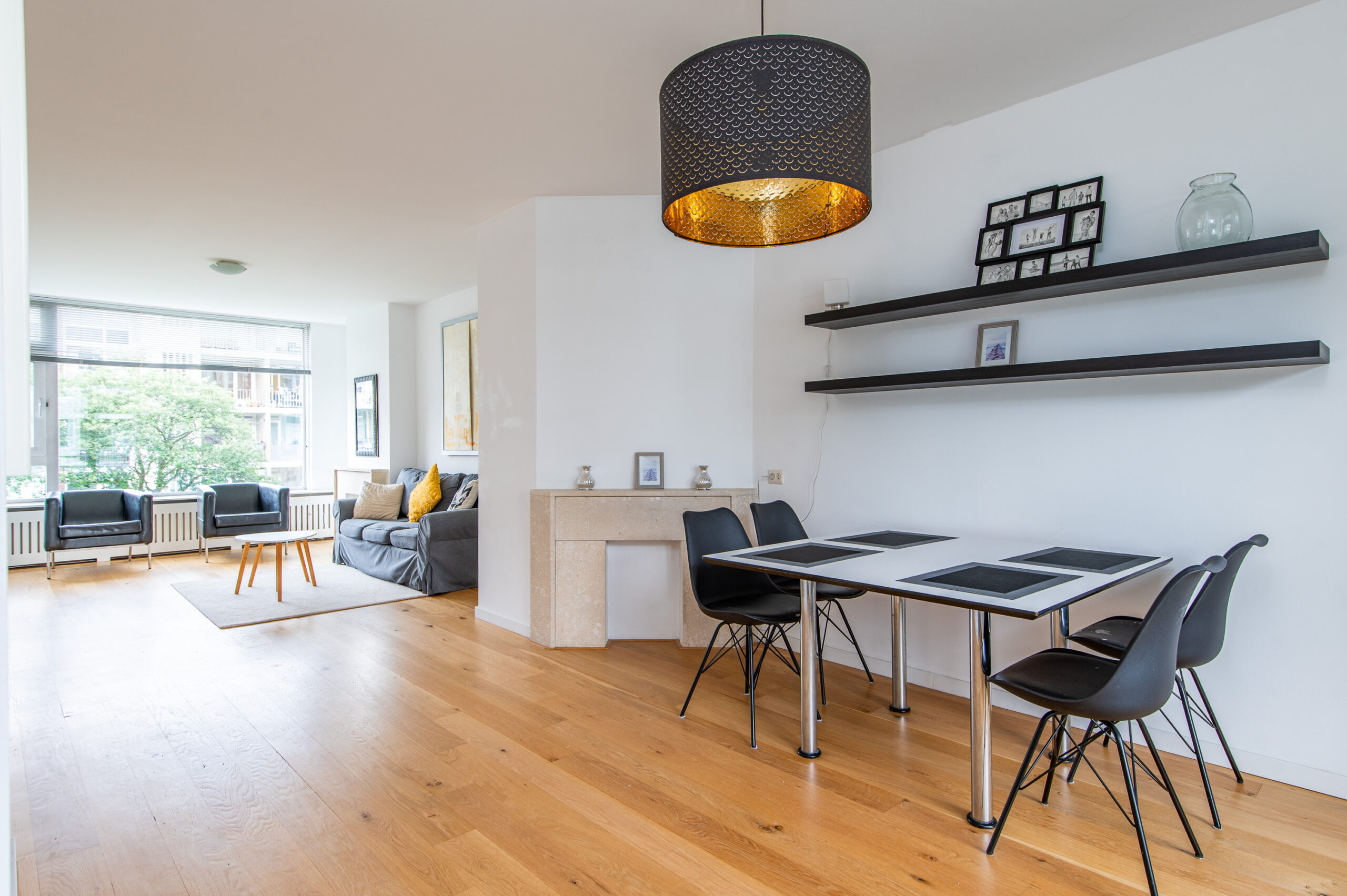 The spacious and bright living room runs from the front to the rear and measures almost 40m2. The living room offers access to the balcony at the rear and is also equipped with a practical built-in storage. The living room is equipped with electrically operated sun blinds at the front.
