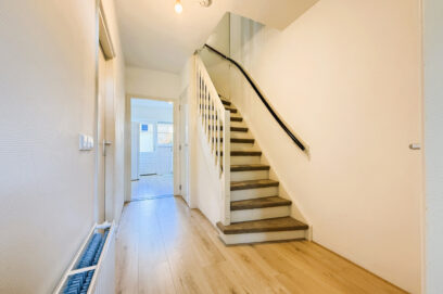 Indeling: Entree met binnenkomst in de hal, uitgerust met een handige kelderkast en een toilet. Toegang tot de lichte en ruime doorzonwoonkamer. Aan de achterzijde van de woning bevindt zich de gesloten keuken met toegang tot de zonnige tuin. De keuken is voorzien van een koelkast met vriezer, vaatwasser en inductieplaat met afzuigkap. Vanuit de hal trap naar de eerste verdieping. Ruime overloop met toegang tot 4 slaapkamers en de badkamer die is voorzien van een douche, wastafel en een designradiator. Trap naar de tweede verdieping waar zich nog een grote slaapkamer bevindt. De overloop biedt plaats voor de wasmachine en droger.