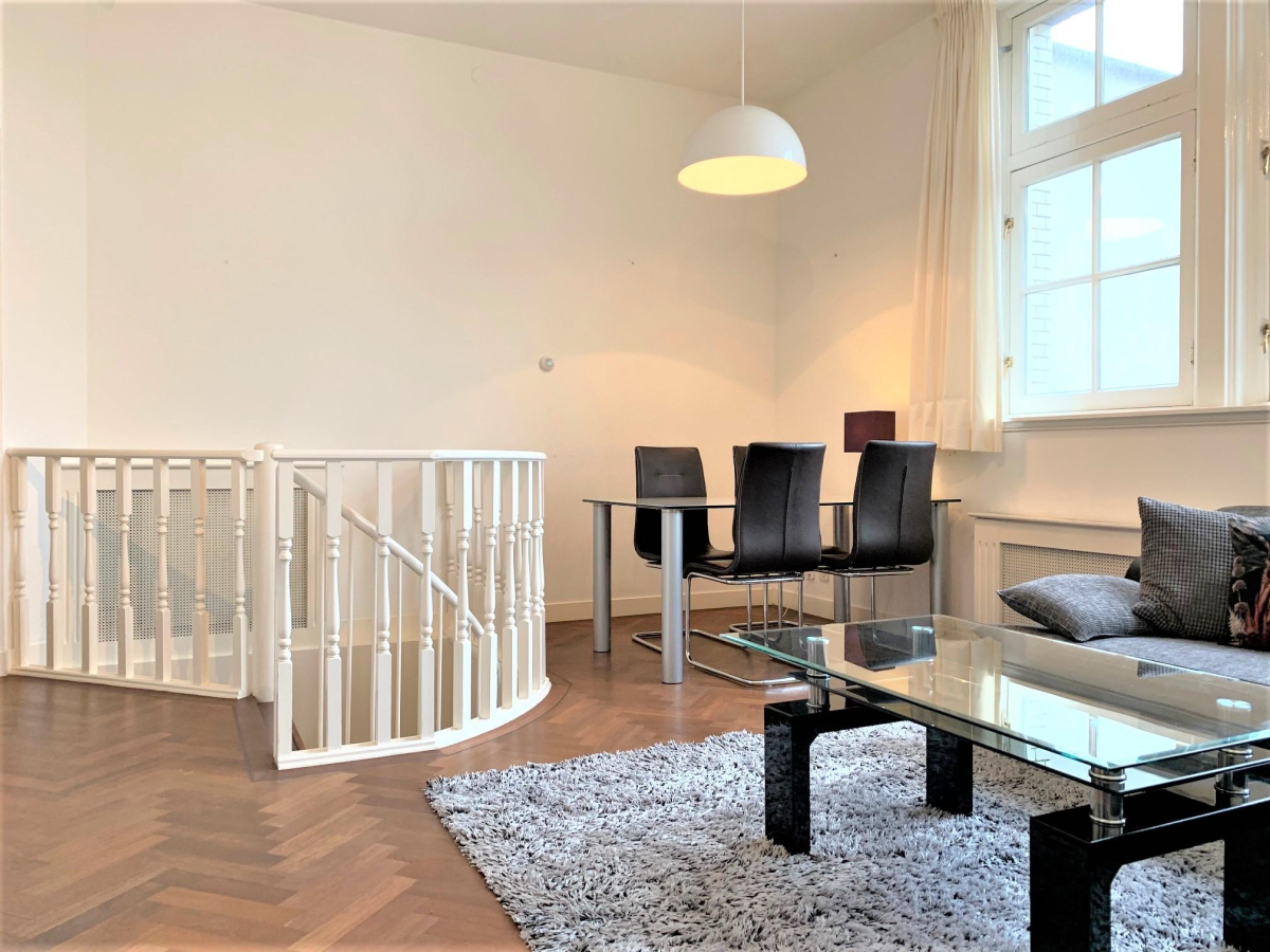 Indeling: Centrale entree met intercom en toegang tot het zeer fraaie atrium vanwaar je met de lift de tweede etage bereikt. Entree van het appartement met toegang tot de woonkamer met semi-open keuken, voorzien van alle benodigde inbouwapparatuur. Separate ruimte met wasmachine en droger en een separaat toilet met fonteintje. Op deze etage tevens een logeerkamer voorzien van een slaapbank. Deze kamer kan tevens prima dienen als werkkamer. Wenteltrap naar beneden waar de riante slaapkamer is gelegen, voorzien van tweepersoonsbed en veel kastruimte. Toegang tot de luxe badkamer voorzien van ligbad met douche, wastafel, tweede toilet en een designradiator. Vanuit de slaapkamer toegang tot een heerlijk balkon.