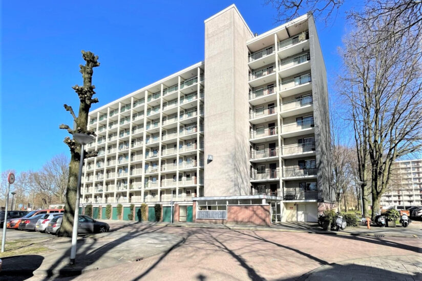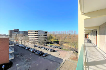 Indeling: Afgesloten entree op de begane grond met (video) intercom, twee liften, trappenhuis en toegang tot de bergingen. Entree van het appartement op de vierde verdieping, hal, meterkast, ingebouwde garderobekast, geheel betegeld toilet met natuurstenen fontein en mechanische ventilatie. Moderne halfopen keuken met ingebouwde voorraadkast, voorzien van diverse RVS-inbouwapparatuur waaronder een combimagnetron, vijf-pits gasfornuis en vaatwasser. De ruime en lichte woonkamer geeft toegang tot het zonnige balkon op het oosten en tot een open werk/studeerruimte. Vanaf het balkon heeft u een geweldig en vrij uitzicht over het park. Aan de achterzijde een royale slaapkamer met moderne vaste kastenwand en geïntegreerde horren. Ruime slaapkamer aan de voorkant voorzien van vaste kastenwand en aansluiting voor wasmachine en droger. Volledig betegelde badkamer voorzien van een douchecabine en wastafel in meubel met natuurstenen blad, mechanische ventilatie en designradiator. Het gehele appartement is voorzien van een lichte laminaatvloer. Tevens is er nog een ruime berging op de begane grond.