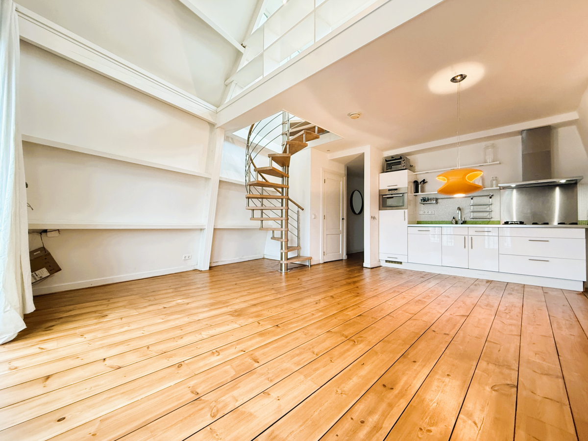 Indeling: Centrale entree met verzorgd trappenhuis. Hal met toegang tot de woonkamer met open keuken. De keuken is voorzien van diverse inbouwapparatuur, zoals een koel-/vriescombinatie, combi-oven, vaatwasser en een gaskookplaat met afzuiging. Vanuit de woonkamer trap omhoog naar een ruime vide die is ingericht als werkkamer. Vanuit de hal toegang tot de luxe badkamer voorzien van een ligbad, aparte douche, wastafel, toilet en bidet. Aan de achterzijde een ruime kamer voorzien van een zeer grote kastenwand. Deze kamer kan prima dienen als gastenkamer of extra kantoor. Trap naar boven waar een tweede vide is ingericht als slaapkamer. Beide vides bieden toegang tot het heerlijke dakterras voorzien van vaste lounge bank. De woning is voorzien van een mooie houten vloer.