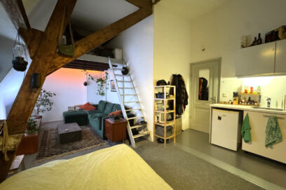 In dit karakteristieke pand komt een ruime studio beschikbaar met hoog plafond, eigen keuken en slaapvide. De studio ligt op de tweede verdieping aan de voorzijde en biedt uitzicht op de singel en het stadspark Valkenberg.