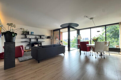 De lichte living met open keuken biedt een zit- en eethoek met prachtig uitzicht op het groen en het levendige Van Coothplein. Via de schuifpui stapt u zo het zonnige terras op. De luxe keuken is voorzien van alle benodigde inbouwapparatuur.