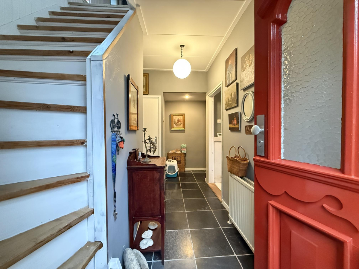 Entree aan de zijkant van de woning, hal met trapopgang naar de verdieping, separaat toilet, toegang tot de keuken aan de achterzijde en het woongedeelte aan de voorzijde van de woning. Fraaie woonkamer met veel lichtinval door de grote ramen voor en het raam aan de zijkant. De woonkamer is knus ingericht met een zitgedeelte en eethoek. Aparte eetkeuken met een groot aanrecht, veel kastjes en een eettafel. De keuken is voorzien van diverse apparatuur zoals een koelkast, kookplaat, afzuigkap en vaatwasser. Via de keuken is de doorloop naar een kleine tussenhal, vanuit hier kan je ook naar buiten. Daarachter gelegen ligt de slaapkamer met een tweepersoonsbed en kast. Via de slaapkamer toegang tot de badkamer met een tweede toilet en douchehoek. Tot slot is er een aparte ruimte met de wasmachine.