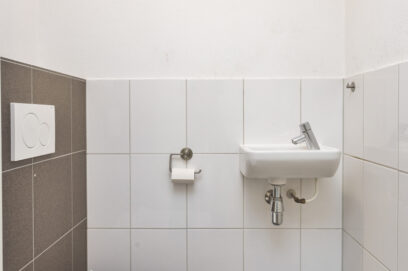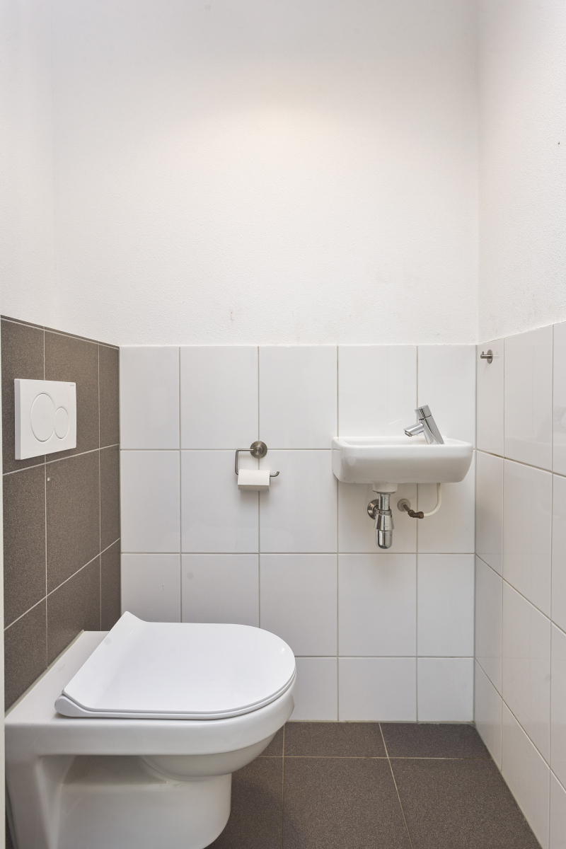 Op de eerste verdieping vinden we een ruime hal met toilet. Aan de linkerzijde vinden we de open keuken welke is uitgevoerd met alle benodigde (inbouw) apparatuur waaronder een inductie kookplaat, afzuigkap, vaatwasser, combinatie magnetron/oven en koel/vrieskast.