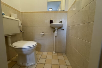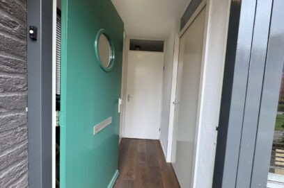 Bij binnenkomst in de woning komen we in de hal waar zich naast de kapstok ook het gastentoilet en de meterkast zich bevinden.