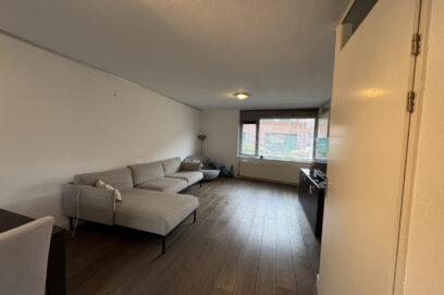 Via de deur aan de rechterzijde komen we in de woonkamer. De woonkamer is gelegen aan een rustige groenstrook waardoor er geen direct verkeer voor de woning langs komt.