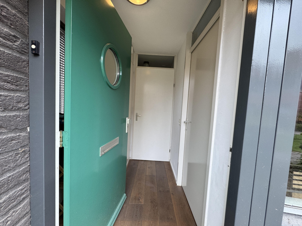 Via de deur aan de rechterzijde komen we in de woonkamer. De woonkamer is gelegen aan een rustige groenstrook waardoor er geen direct verkeer voor de woning langs komt.