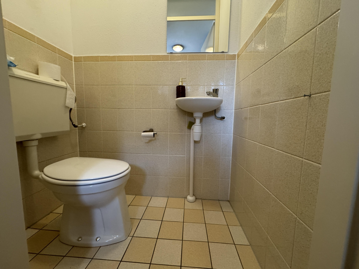 Bij binnenkomst in de woning komen we in de hal waar zich naast de kapstok ook het gastentoilet en de meterkast zich bevinden.