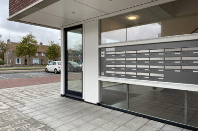 Hoofdentree met brievenbussen, video-intercom en lift of trap naar de verdiepingen.