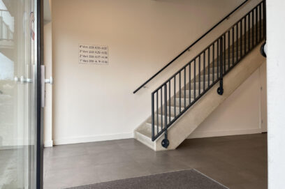 Vanuit het trappenhuis kan je via de galerij de voordeur van de appartementen worden bereikt.