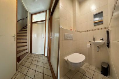 Via een vaste trap bereik je de ruime zolderverdieping. Deze etage biedt volop mogelijkheden als extra slaapkamer, werkruimte of hobbykamer. Hier bevinden zich tevens de aansluitingen voor de wasapparatuur en de opstelling van de technische installaties (warmtepomp en cv-ketel).