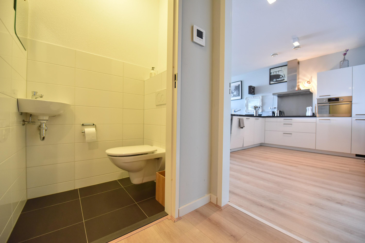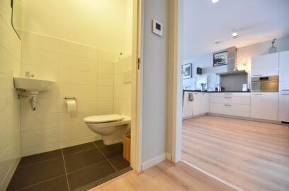 Voordeur, entree met ontvangsthal en videofoon, apart toilet. In de gang is een aparte ruimte waar de wasmachine/droger zijn opgesteld.