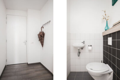 Entree, hal met video installatie en toegang tot de vertrekken. Seperaat toilet.