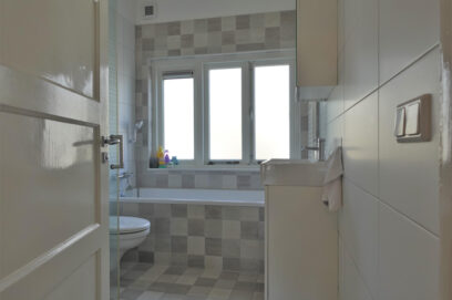 Via de trapopgang is de overloop te bereiken met toegang tot de badkamer, de drie slaapkamers en de trapopgang naar de 2e verdieping. De badkamer is aan de achterzijde van de woning gesitueerd en is voorzien van een bad, een douche, een wc en een enkele wastafel met meubel. Er zijn twee ruime slaapkamers die beide zijn voorzien van twee persoons bedden en een kleinere slaapkamer die zich aan de voorzijde bevindt.