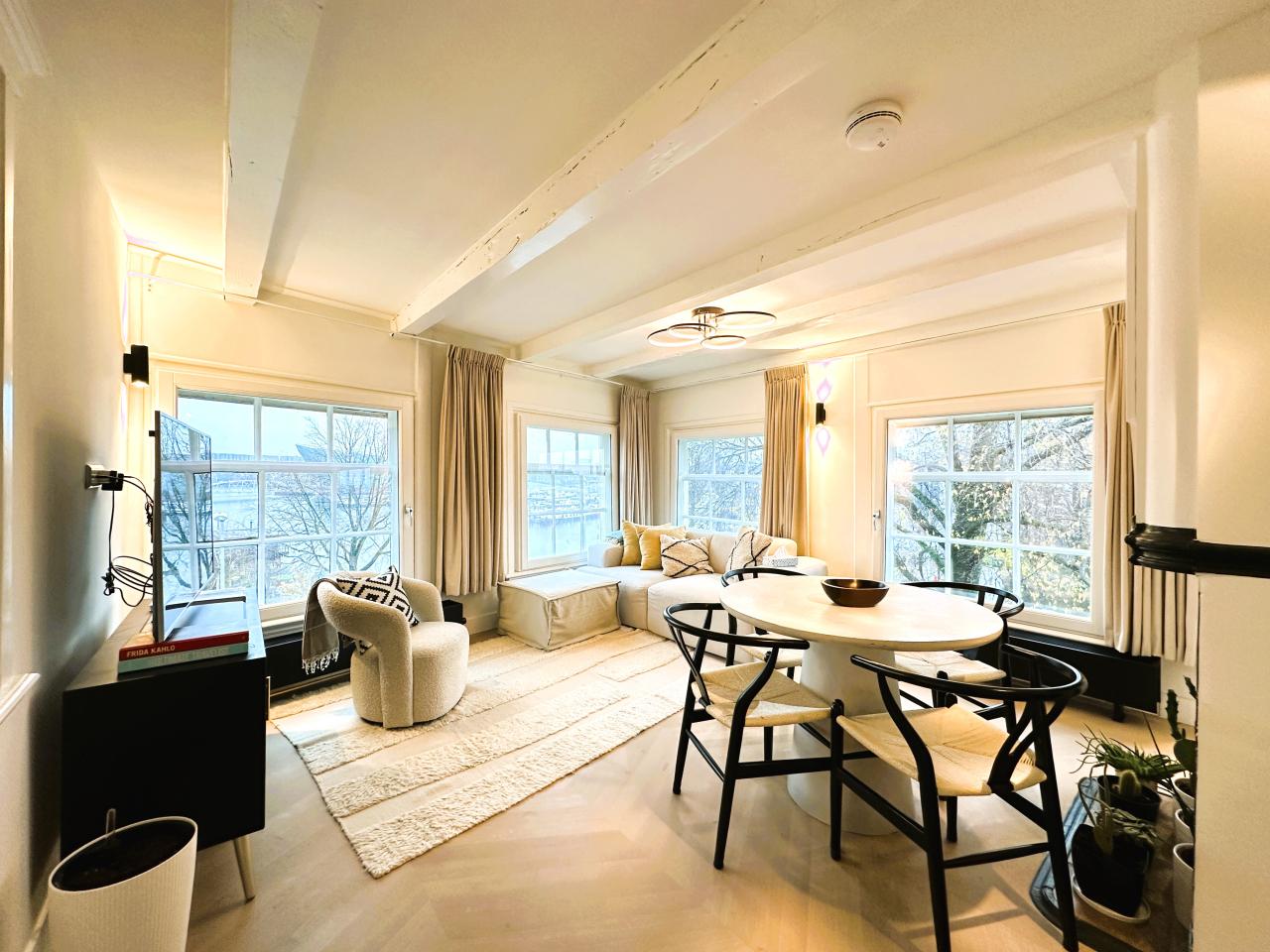 Betreed het pand via een statige entree met verzorgd trappenhuis en laat je betoveren door de authentieke details die de geschiedenis van deze plek weerspiegelen. Wat direct opvalt zijn de vele ramen door de hoekligging en het adembenemende vrije uitzicht op het water. De hoogwaardige inrichting benadrukt de warme sfeer. De keuken is voorzien van state-of-the-art apparatuur, waaronder een koelkast, vriezer, combi-oven, vaatwasser, inductiekookplaat met afzuiger, een kokend waterkraan van Quooker en zelfs een ingebouwde wijnklimaatkast! Vanuit de woonkamer bereik je een kamer die is ingericht als werkkamer, maar eventueel ook kan dienen als gastenkamer. De slaapkamer is voorzien van een comfortabel tweepersoonsbed en veel inbouwkastruimte. De moderne badkamer heeft een inloopdouche, wastafelmeubel en een designradiator. Verder een separaat toilet en een kast met wasmachine en droger.