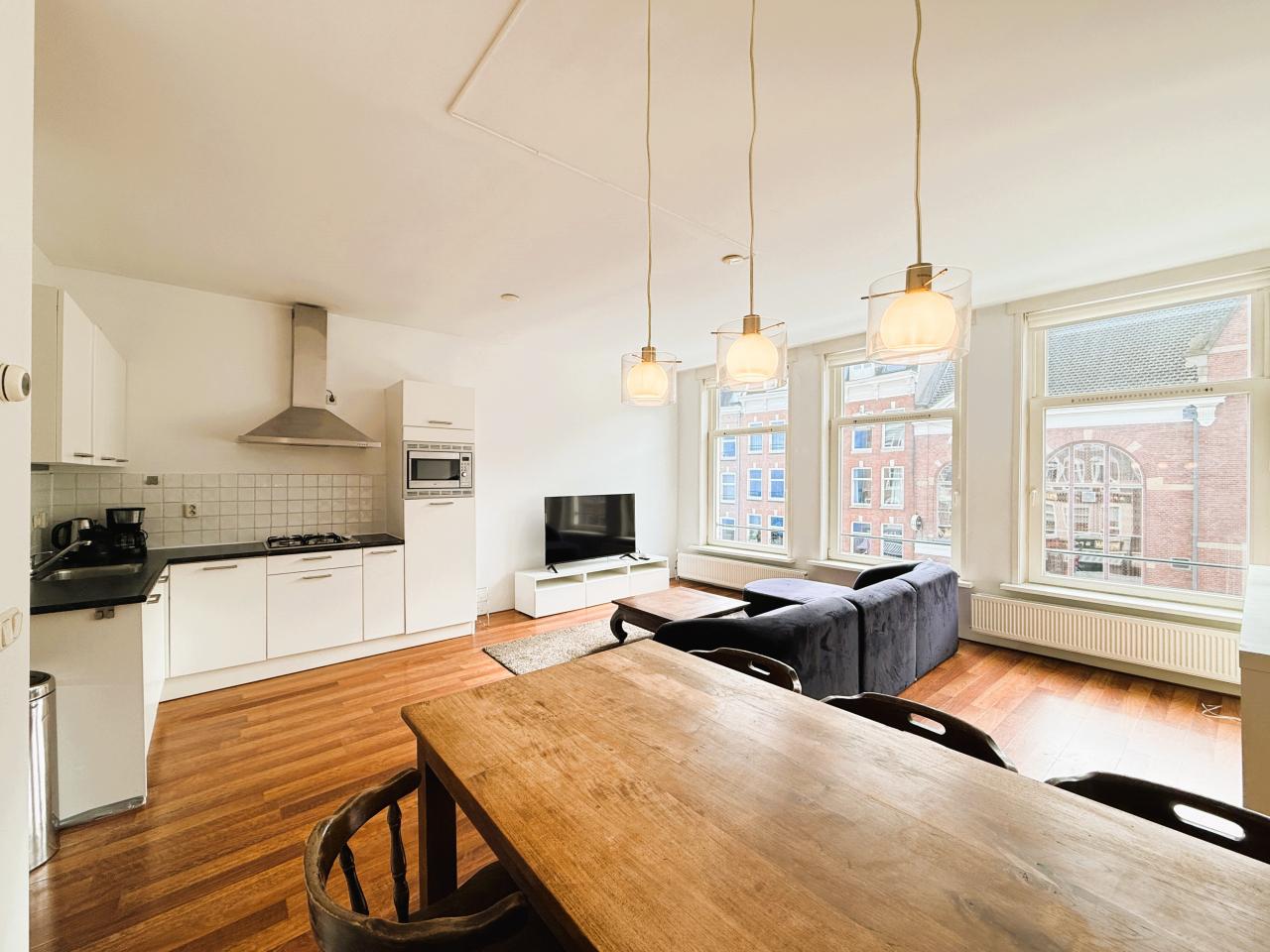Gelegen in een karakteristiek pand vindt u dit fraaie gemeubileerde 3-kamer appartement met zeer ruim balkon in het hart van ‘De Pijp’ aan de gezellige Albert Cuypmarkt.