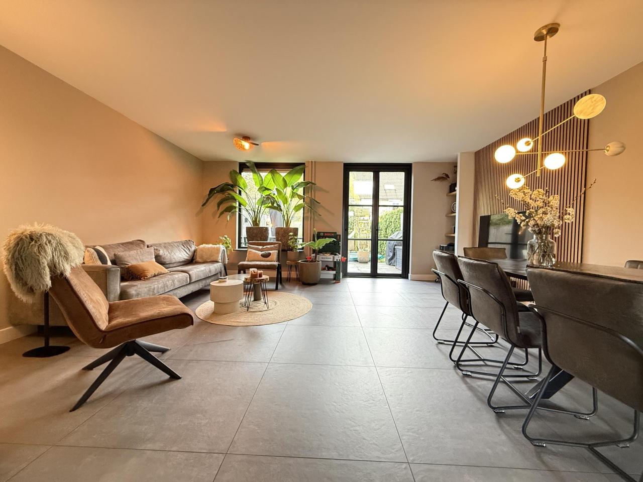 Ruime en lichte woonkamer met voldoende plek voor zowel een zithoek als een eethoek. Deur naar de achtertuin. De woning is praktisch ingedeeld en biedt een prettige leefruimte. De openkeuken is gesitueerd aan de voorzijde en beschikt over diverse inbouwapparatuur en voldoende kastruimte.