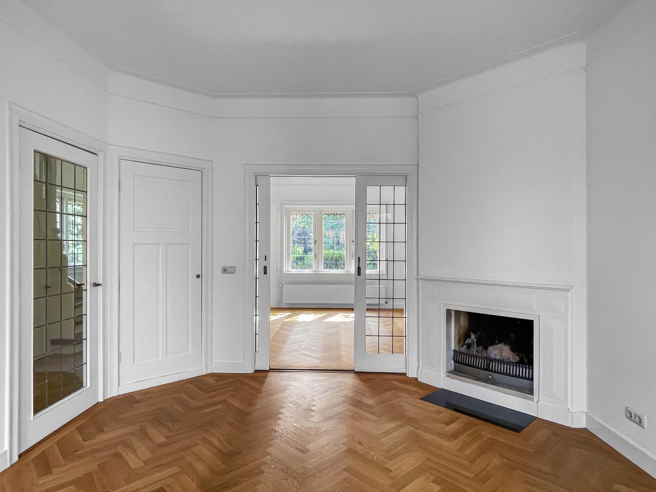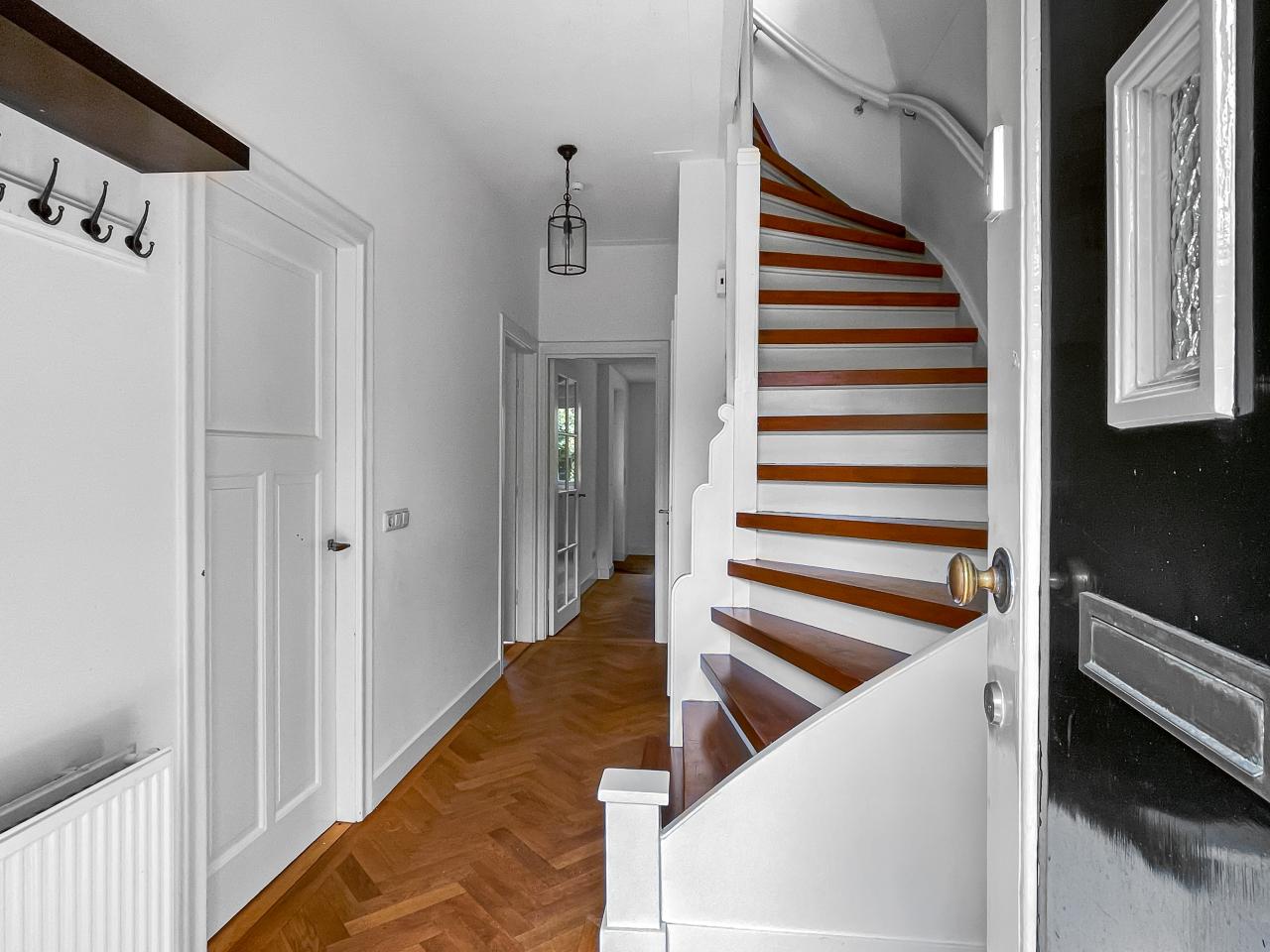 Eerste etage, overloop, drie in grootte variërende slaapkamers, de twee ruimste kamers zijn voorzien van (originele) inbouwkasten. De badkamer is voorzien van een dubbele wastafel met meubel en granieten blad, een toilet, ligbad en separate douche.