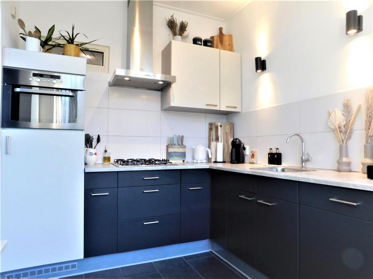 Ruime woonkamer met erker aan de voorkant en openslaande deuren naar de slaapkamer aan de achterkant. De keuken bevindt zich aan de voorkant, is ruim en licht en geeft een prachtig uitzicht op de Baronielaan. Natuurlijk is de keuken van alle gemakken voorzien.