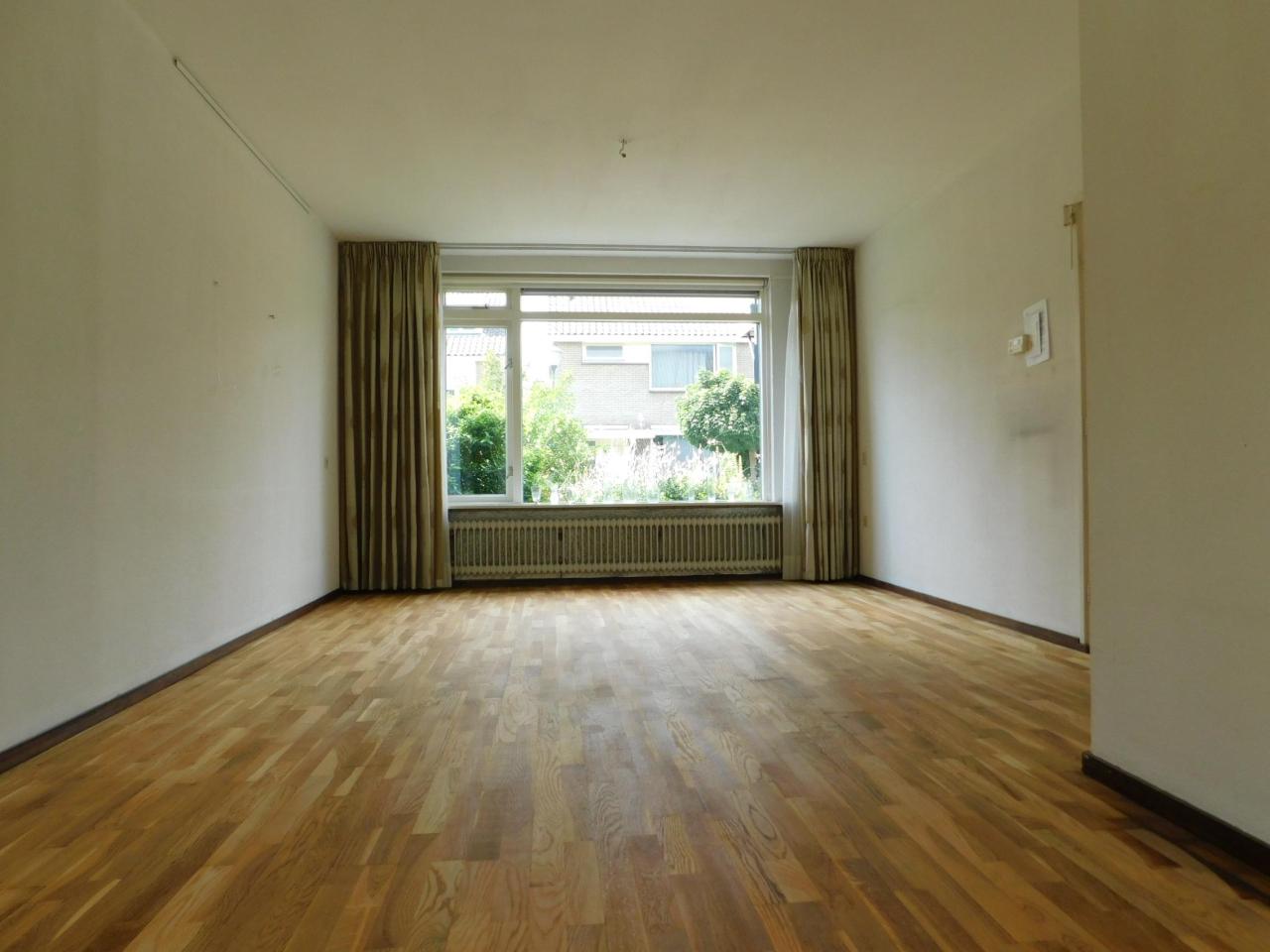 De woonkamer is voorzien van een parketvloer en een loopdeur naar de achtertuin.