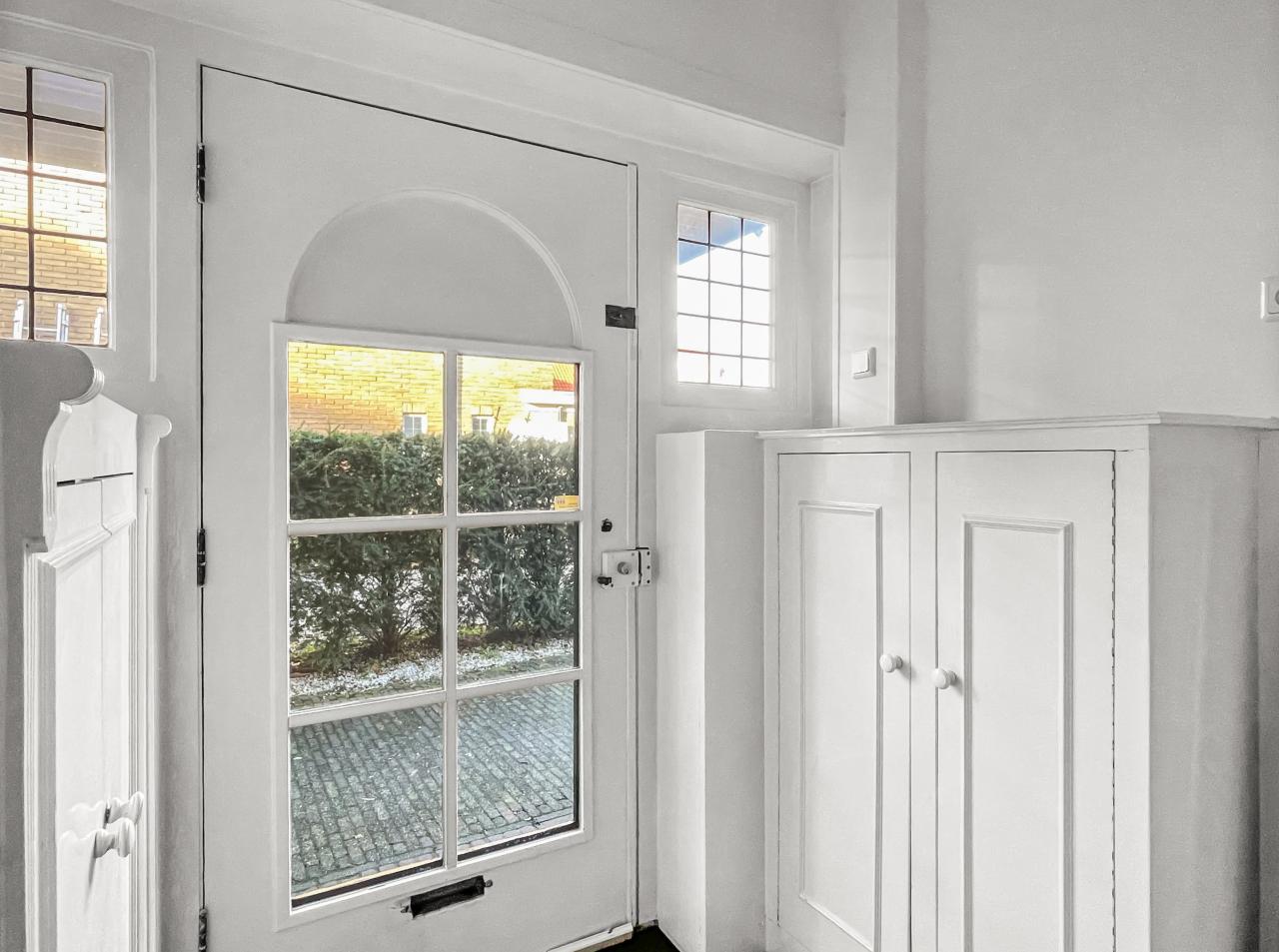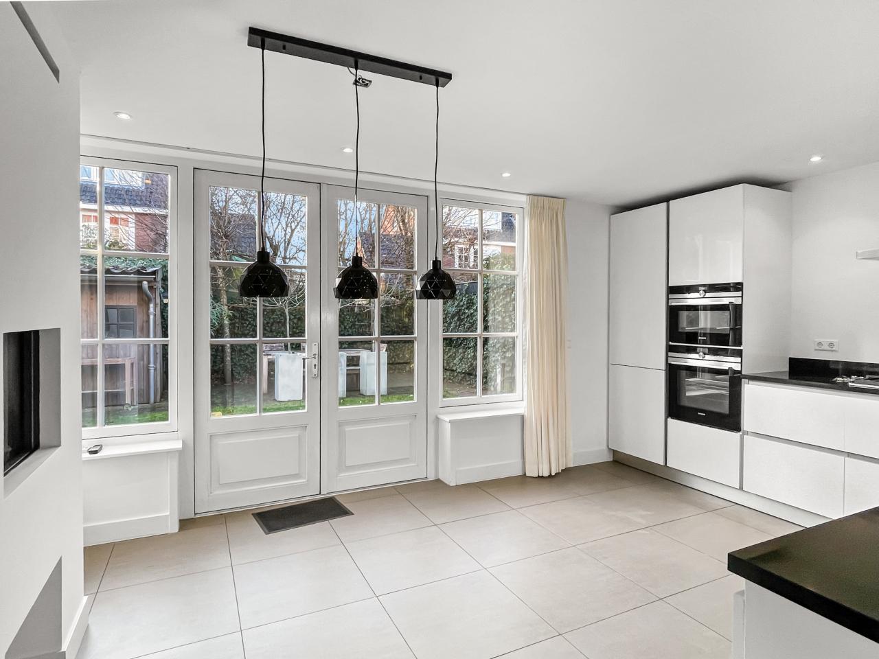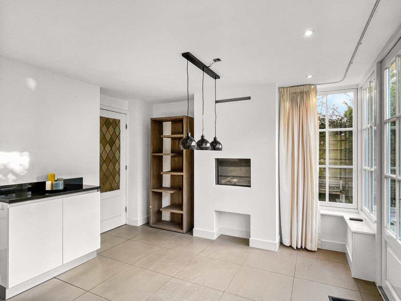 Entree, vestibule, modern toilet met fonteintje, ruime woon-/eetkamer in L-vorm met en suite, erker en parketvloer, open haard in de zitkamer, openslaande deuren naar de tuin. Lichte uitgebouwde royale eetkeuken op het zuidwesten welke is voorzien van hoogwaardige inbouwapparatuur zoals een koel / vriescombinatie, stoomoven, combi oven, vaatwasmachine en een 5 pits kookplaat. Vloerverwarming, een gezellige gashaard en openslaande deuren naar een zonnig terras.