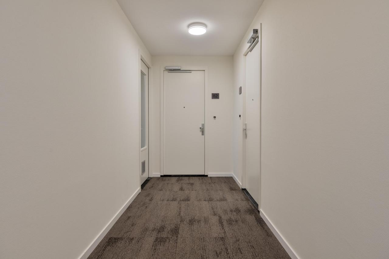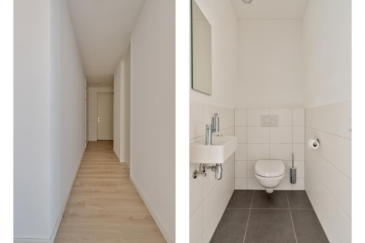 Bij binnenkomst in het appartement komen we binnen in een lange, lichte hal welke toegang geeft tot alle vertrekken. Het gehele appartement (met uitzondering van de badkamer en het toilet) is voorzien van een lichte laminaatvloer.
