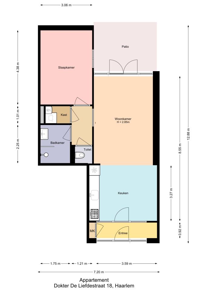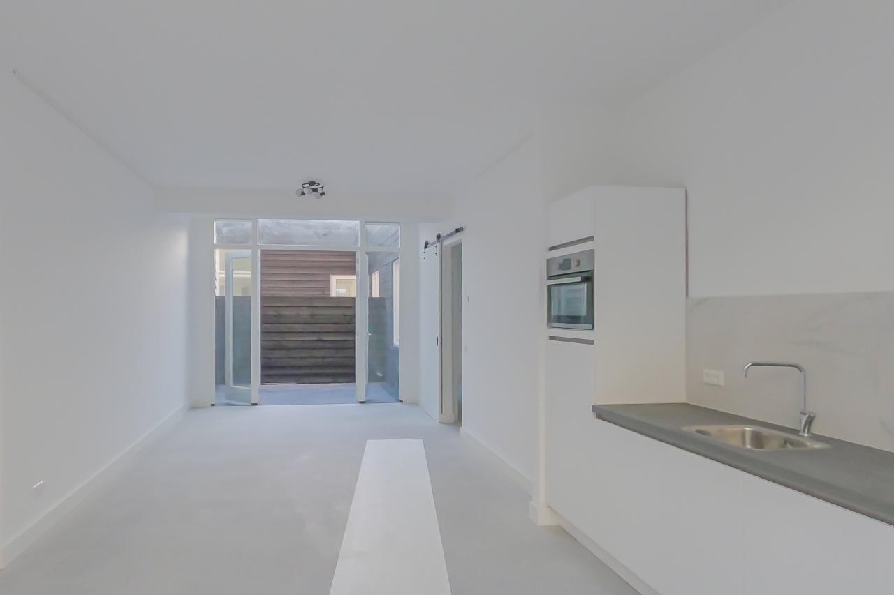 De omgeving biedt alle voordelen van de stad: het centraal station en de historische binnenstad van Haarlem liggen op slechts 15 minuten fietsafstand. Bovendien geniet u in deze wijk van gratis parkeren en bevinden diverse supermarkten en winkels zich op letterlijk twee minuten loopafstand. De entree van het appartement bevindt zich in een licht glazen voorportaal, dat toegang verleent tot de ruime woonkamer. De moderne open keuken is van alle gemakken voorzien, waaronder een vaatwasser, kookplaat, combi-oven en afzuigkap. Dankzij de openslaande deuren wordt de woonkamer verlengd naar de zonnige patiotuin, een heerlijke plek om buiten te ontspannen.