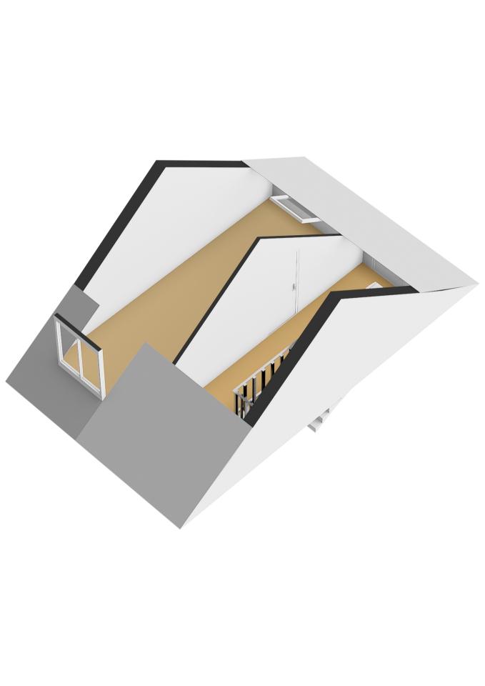Tweede verdieping: Overloop waar de wasmachine en droger staan opgesteld (deze blijven achter), overloop geeft tevens toegang aan ruime over de gehele lengte van de woning gelegen zolderkamer.