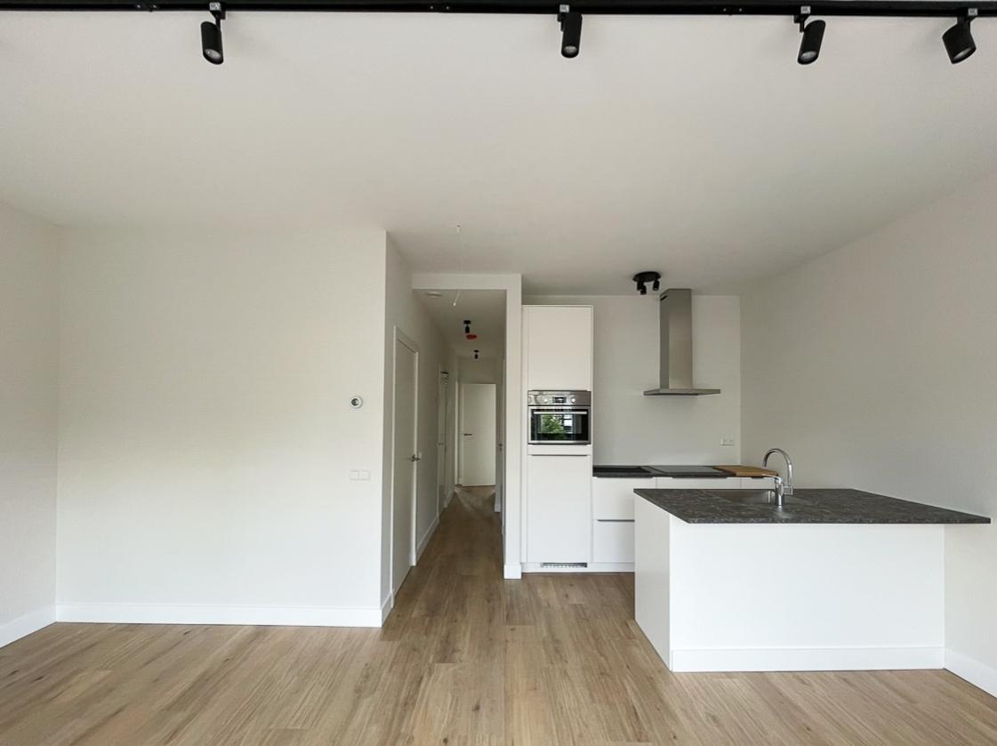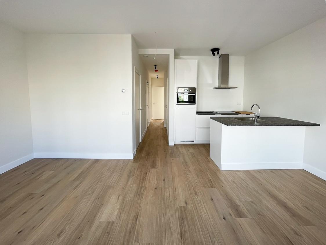 Entree, hal, L-vormige woonkamer met open keuken v.v. inductie kookplaat, afzuigkap, vaatwasser, koelkast en combi oven-magnetron, bijkeuken met c.v.-opstelling, en aansluitingen voor wasmachine en wasdroger, moderne badkamer met wastafelmeubel, hangend toilet en riante douche, slaapkamer met plek voor klein bureau en openslaande deuren naar dakterras , 2de slaapkamer met deur naar dakterras.