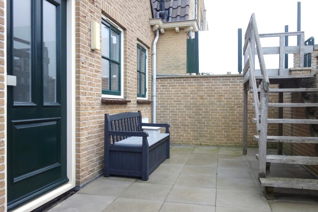Het fraaie terras is middels een trap te bereiken en is aan de achterzijde van het appartement gelegen. Het terras ligt op het Zuidwesten en is een heerlijke plek vrij te vertoeven.