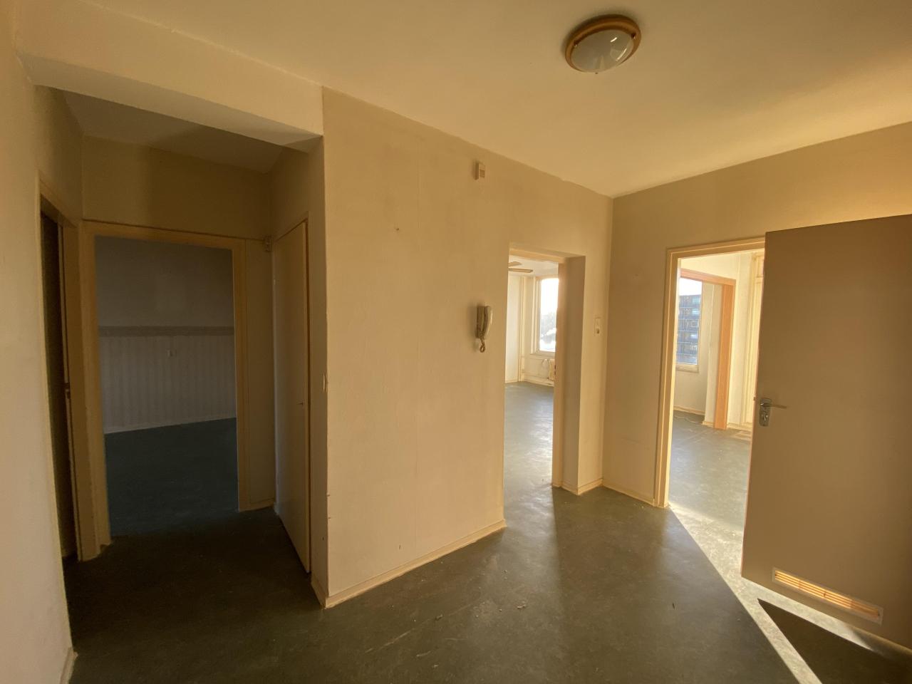 Entree appartement met portaal. De ruime en brede gang heeft een inbouwkast en een apart toilet.